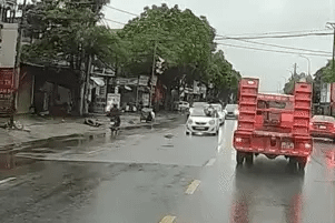Kinh hoàng cú tông trực diện của xe máy điện vào xe tải khi cố tình vượt ẩu -
