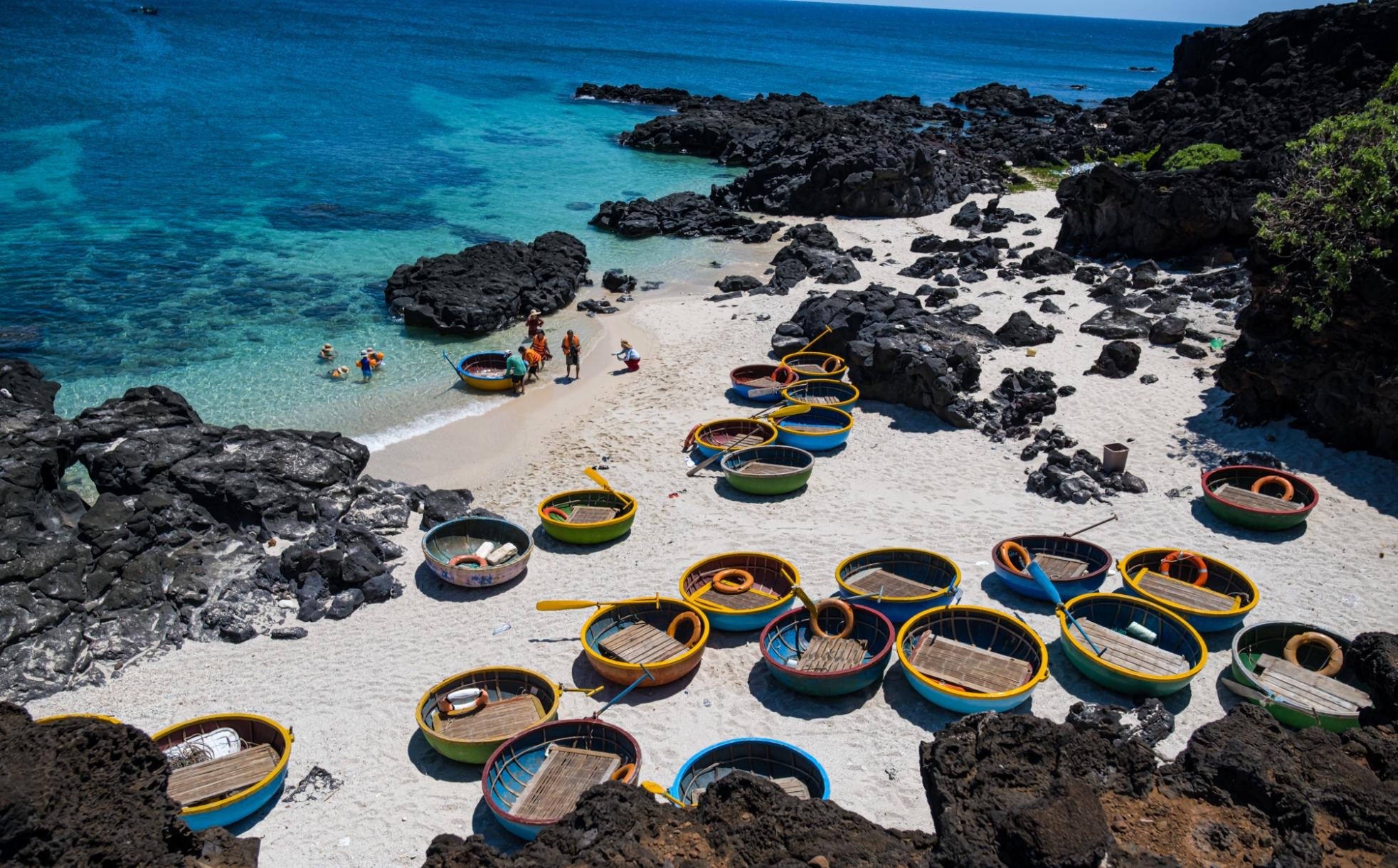 Được ví như một nàng công chứa ngủ quên, Vịnh Vân Phong cuốn hút du khách bởi cảnh sắc thiên nhiên hùng vĩ nhưng đầy thơ mộng. Đi khắp vịnh, du khách cũng dễ dàng bắt gặp bờ cát vàng kim sa, làn nước biển trong veo, phảng phất màu xanh ngọc bích. Nước ở đây trong đến độ đứng trên bờ cách cả trăm mét cũng có thể nhìn thấy đáy.