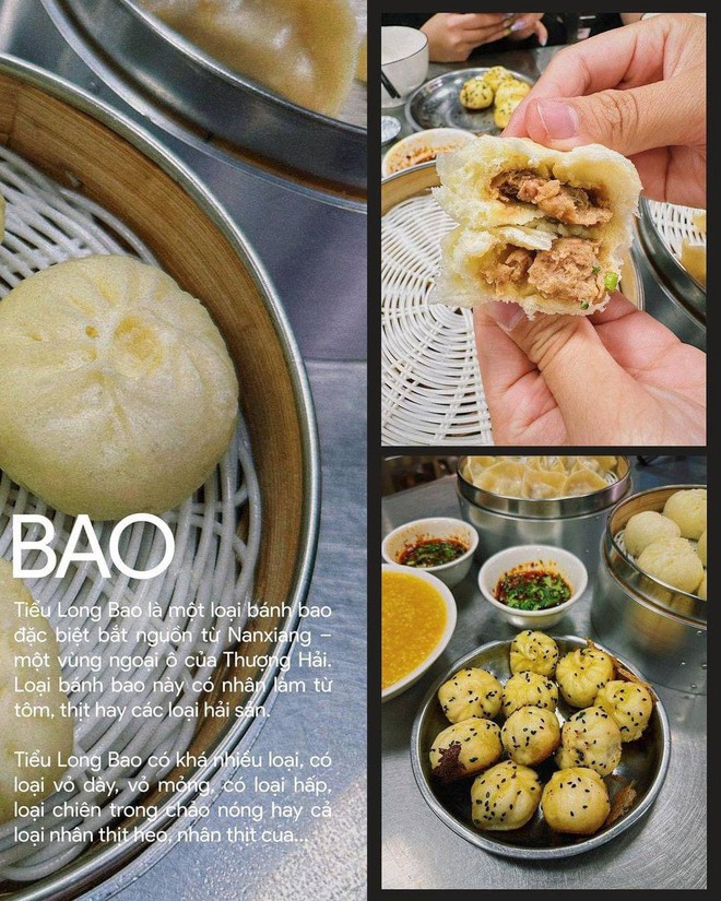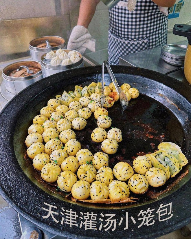 Ngoài sủi cảo thì một trong những món mà du khách nên thưởng thức chính là tiểu long bao. Bên trong nhân của bao thì có thịt bằm, nấm, hành lá, tẩm ướp đậm đà. Khi ăn nóng các bạn sẽ thấy bánh hấp rất thơm, mềm nhưng vỏ bánh hơi dày một chút. Đối với bánh bao chiên vì chỉ chiên sơ qua nên sẽ bị ngấm dầu hơn, nhanh có cảm giác ngấy. Tại đây thực khách sẽ chủ động pha nước chấm ăn kèm, vừa chua vừa cay vì có ớt trưng và dầu dấm lại thơm mùi rau mùi sẽ giúp bánh đỡ ngán hơn. Giá bánh hấp 8 tệ /xửng (28.000 VND), loại chiên chiên 10 tệ/xửng (35.000 đồng)
