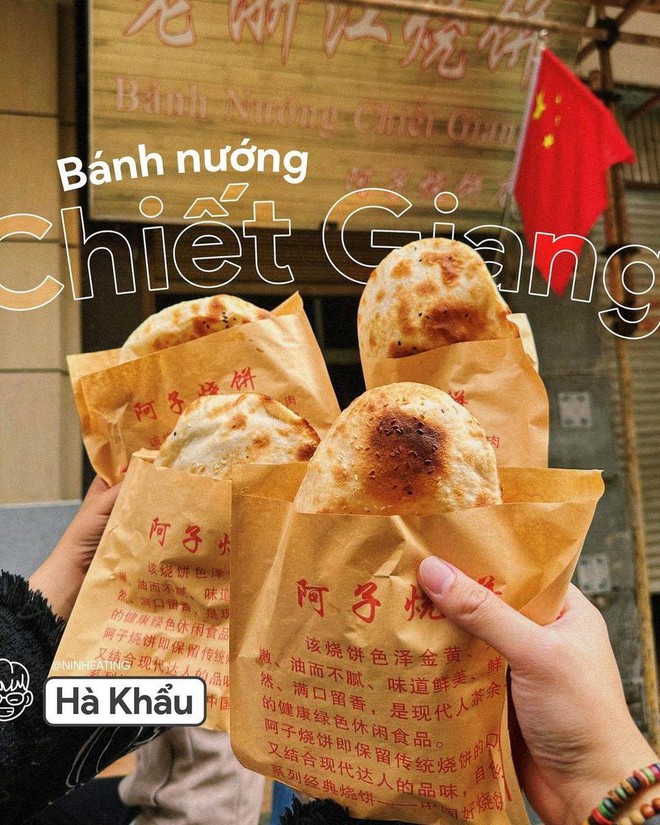 Là một món ăn mà du khách nào sang đến Hà Khẩu cũng tìm để thưởng thức, vậy nên quán bánh này luôn tấp nập khách. Tại đây, bánh sẽ được nướng bên trong thành của một cái lò nướng to. Với đủ loại nhân từ đường trắng, đậu đỏ, thịt lợn, thịt bò trong đó nhân thịt bò được đánh giá là ngon nhất. Bánh ra lò nóng giòn, thơm phức mùi vừng bên trên. Giá bánh giao động từ 3 - 10 tệ tùy loại nhân. Bánh nướng Chiết Giang nhìn chung vị khá ổn cho một món ăn vặt và lưu ý là món bánh này thưởng thức lúc còn nóng mới ngon.