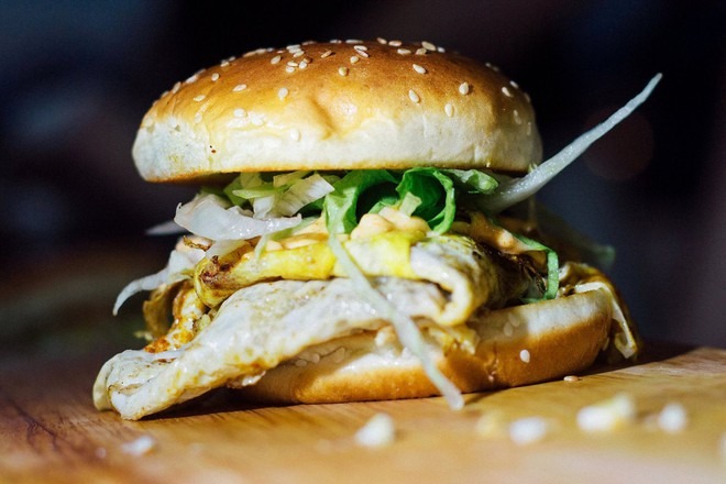 Cách bọc thịt bằng trứng rán cũng khá đơn giản. Người bán chỉ việc đập một quả trứng vào chảo rồi dùng xẻng tán trứng ra cho mỏng. Sau đó, người bán sẽ cho một miếng thịt burger đã được rán chín lên trên. Phần thịt này có thể là thịt bò hoặc thịt gà tùy theo sự lựa chọn của khách hàng.