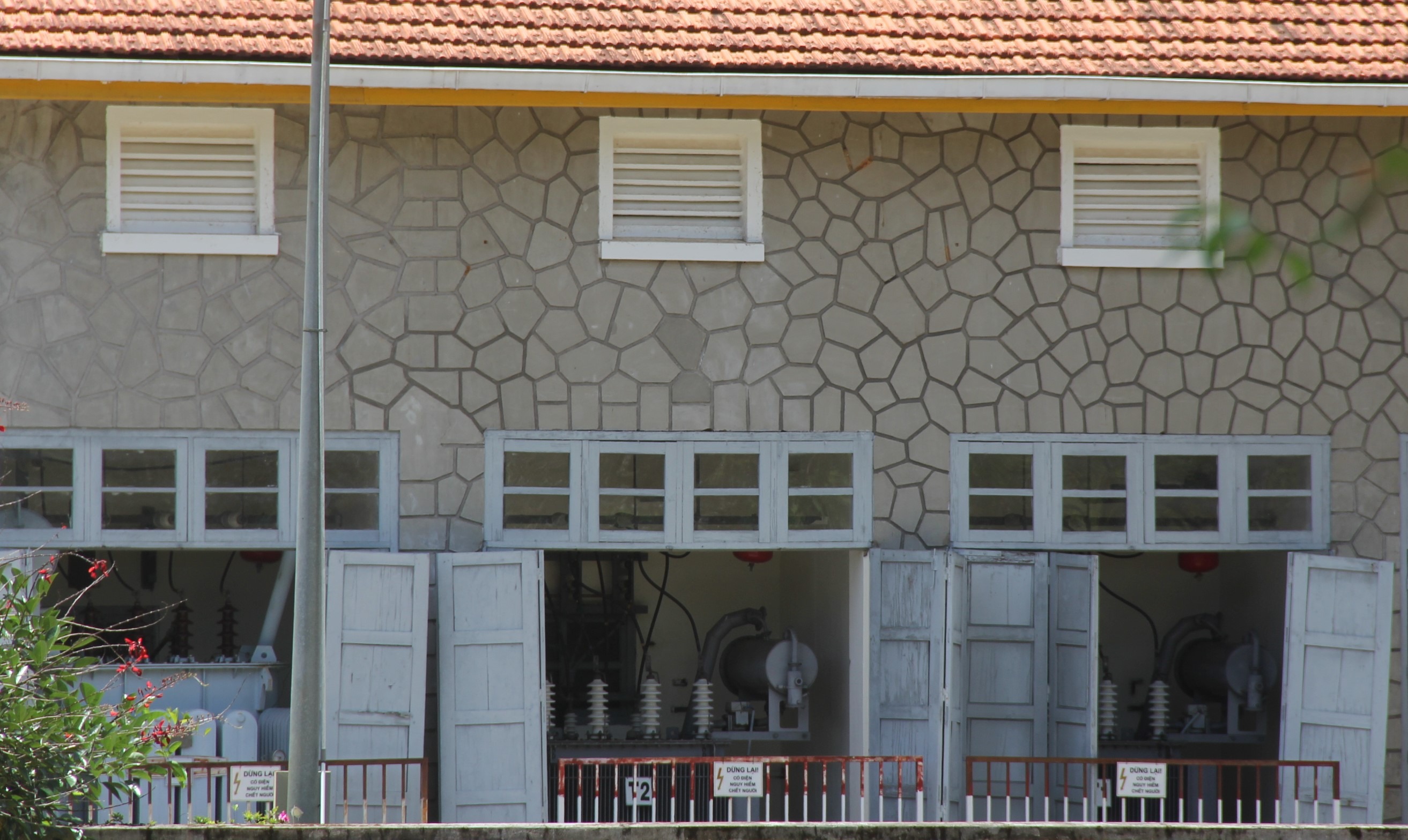 Để có thể vào bên trong nhà máy bắt buộc phải đi qua một cây cầu nhỏ bắc qua dòng nước xả để vận hành nhà máy. Công trình được thiết kế với những vật liệu quen thuộc thường thấy ở các biệt thự cổ, mái ngói đỏ có độ dốc lớn mang dáng dấp kiến trúc nhà rông Tây Nguyên.