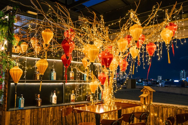 Với chiếc view Landmark 81 cực xịn nhưng Vi Vu Rooftop lại mang đến cho bạn cảm giác như đang vi vu ở Hội An bởi không gian ấm cúng. Ở đây có góc nhỏ được trang trí đèn lồng siêu lung linh, đầu lân, mang đậm sắc màu tuổi thơ.