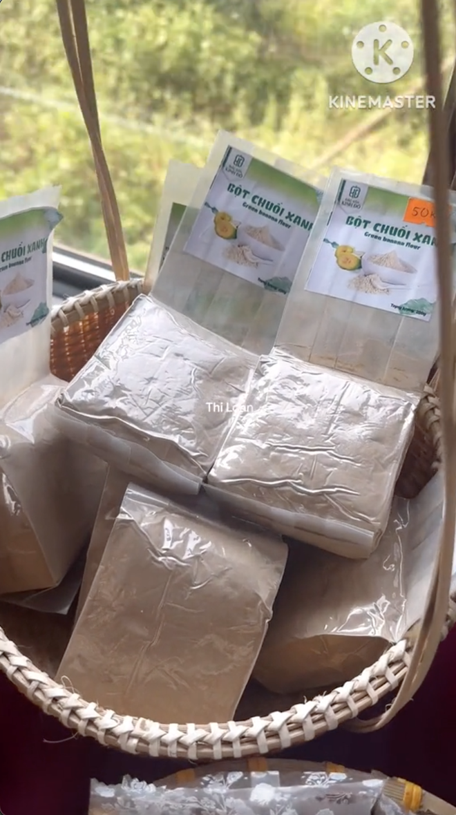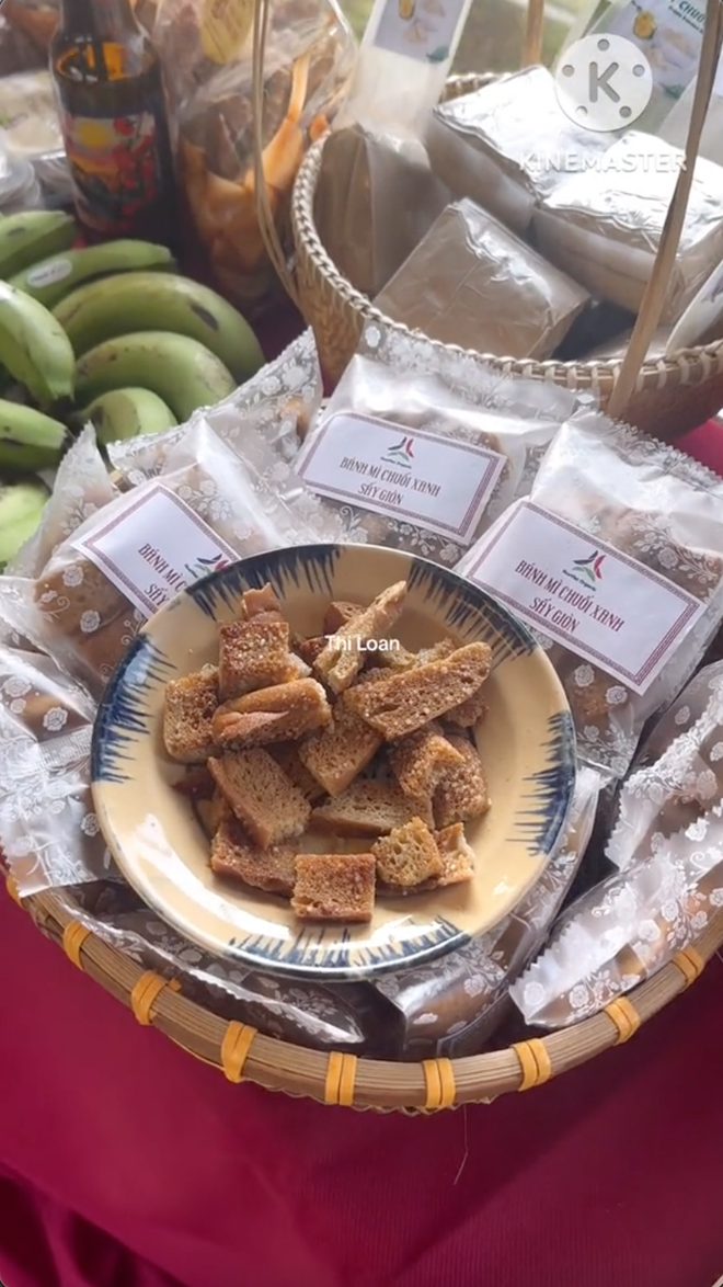 Bên cạnh bánh mì từ bột chuối xanh, trên chuyến tàu còn có các sản phẩm như bánh mì chuối xanh sấy khô, bột chuối xanh (có thể làm các loại bánh), mì làm từ bột chuối xanh... để các du khách mua về làm quà.