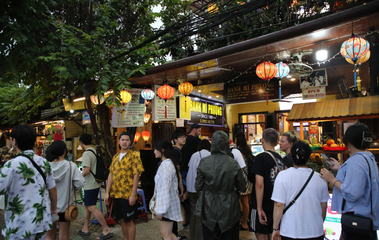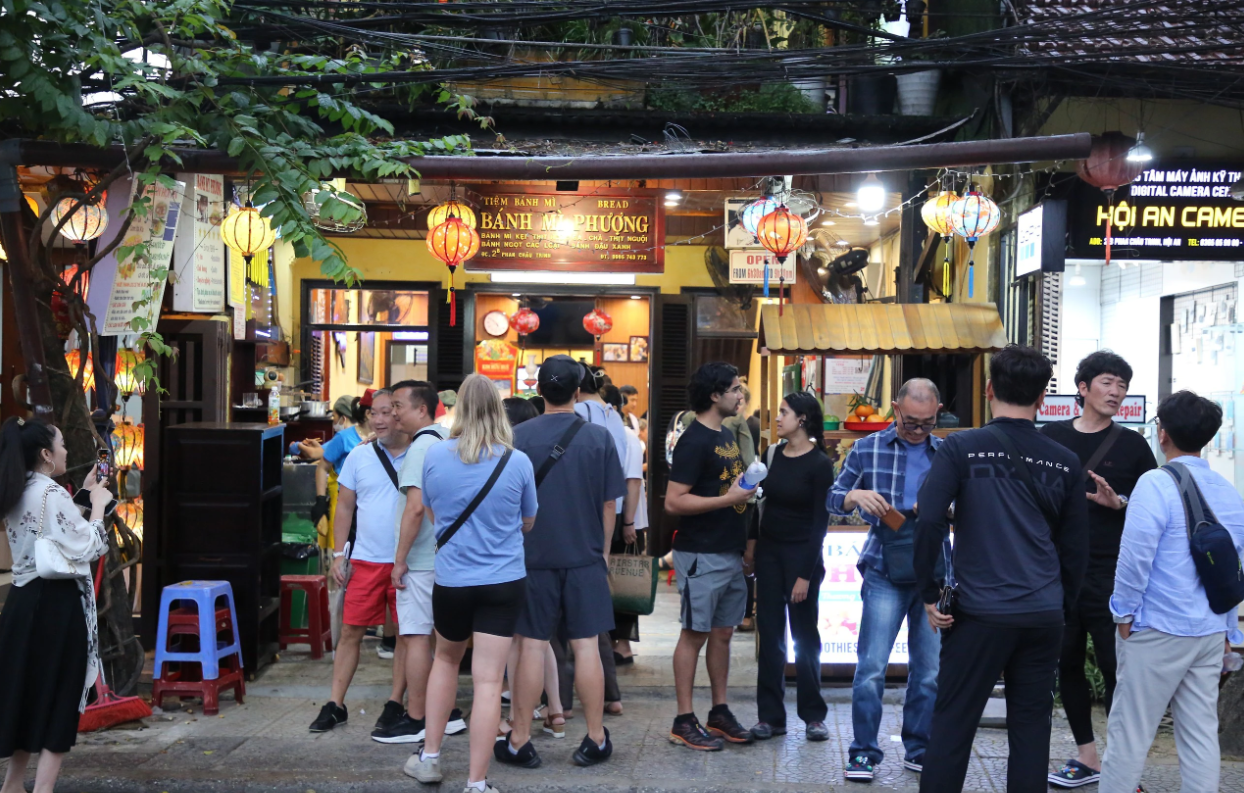 Theo đó, lượng khách tới mua bánh mì vẫn đông như ngày nào, đặc biệt là du khách quốc tế. Rõ ràng thương hiệu bánh mì nổi tiếng này ở Hội An vẫn là điều được khách du lịch đặc biệt chú ý và tìm đến thưởng thức. Đến thời điểm hiện tại, dù chưa đạt số lượng khách đông như trước nhưng cũng có nhiều thời điểm nhiều khách chờ xếp hạng mua bánh mì Phượng.