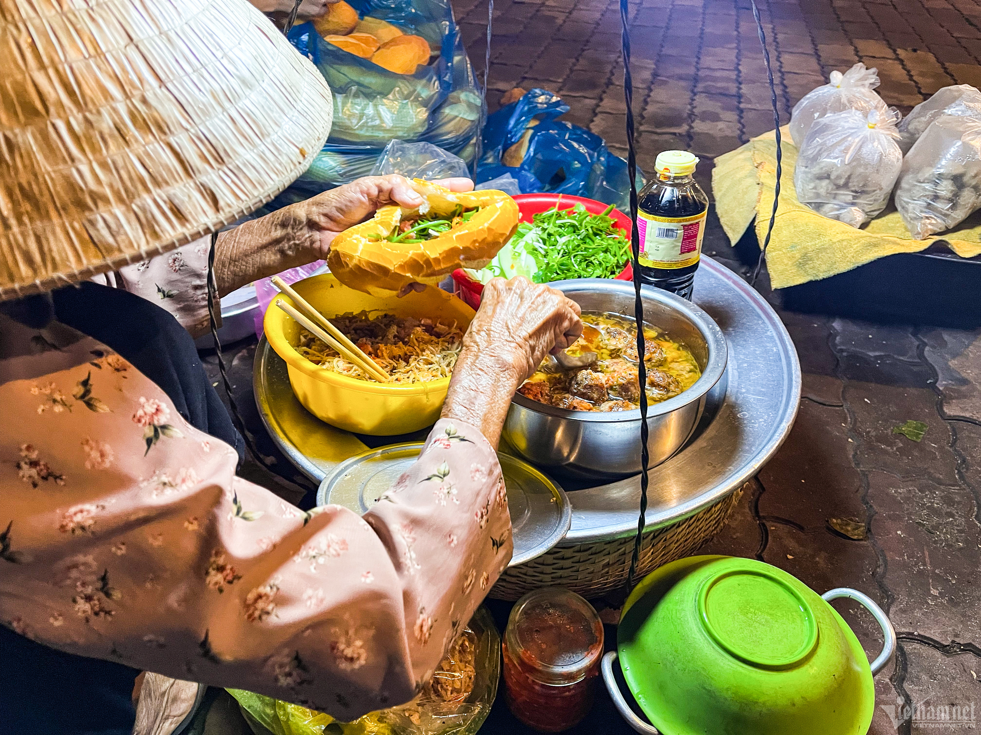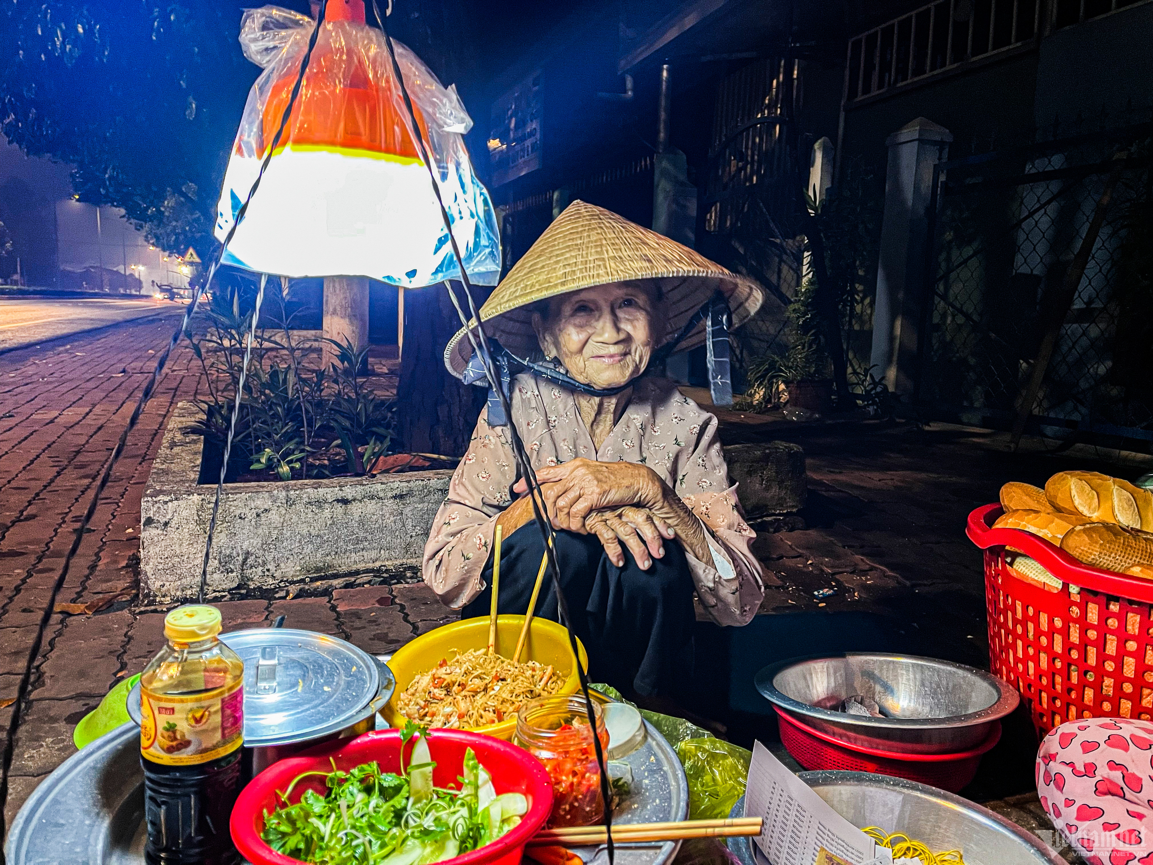 Khi màn đêm buông xuống, các gia đình, cửa hàng dần đóng cửa, tắt điện, người người chìm vào giấc ngủ say, bà Nguyễn Thị Ngang (87 tuổi, Bình Dương) lại rục rịch đón ngày mới bên gánh bánh mì.