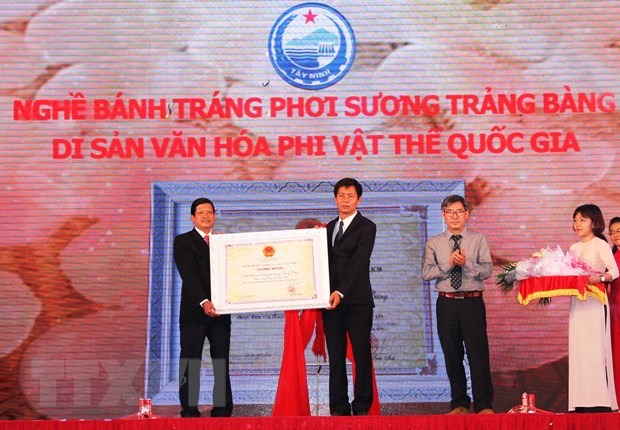 Năm 2016, nghề làm bánh tráng phơi sương Trảng Bàng được Bộ Văn hóa, Thể thao và Du lịch công nhận là Di sản Văn hóa Phi vật thể Quốc gia.