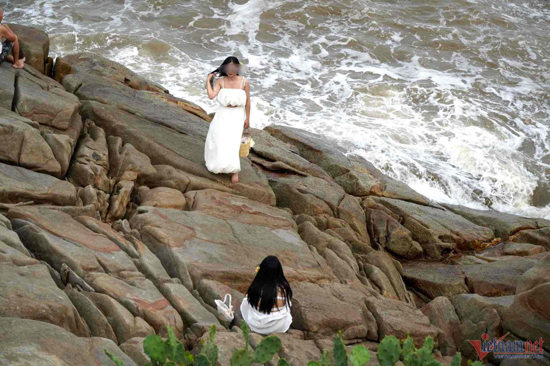 Một số hình ảnh du khách bất chấp nguy hiểm check-in ở mỏm đá.
