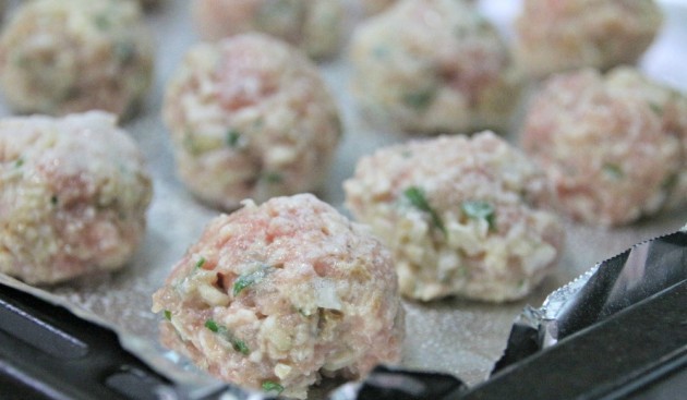 Bước 4: Chia thịt thành từng viên nhỏ. Sau đó, đặt thịt lên khay nướng có lót giấy bạc. Nướng ở mức nhiệt 180 độ C trong 14 đến 15 phút hoặc đến khi thịt chuyển màu vàng đẹp mắt là đạt.