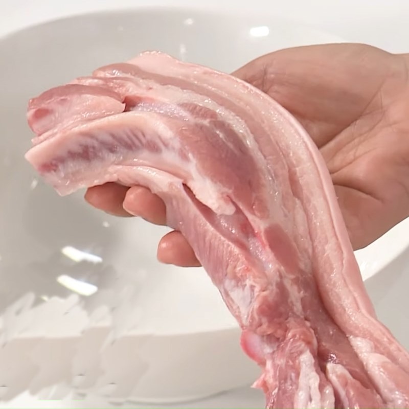 - Thịt heo sau khi mua về, bạn cạo sạch phần lông còn sót lại trên lớp da, dùng nước muối pha loãng để rửa rồi rửa lại nhiều lần với nước sạch sau đó để ráo.