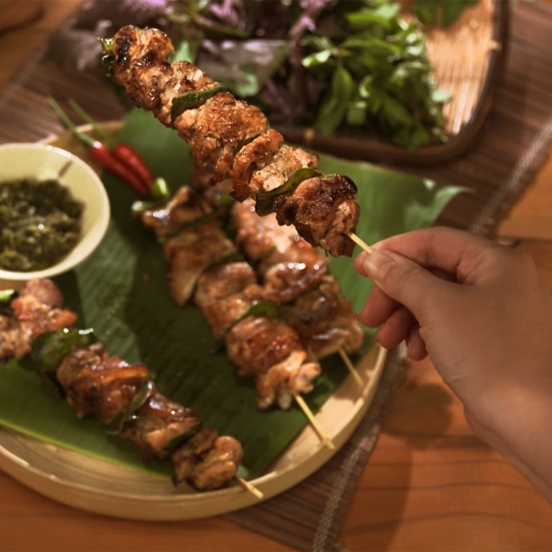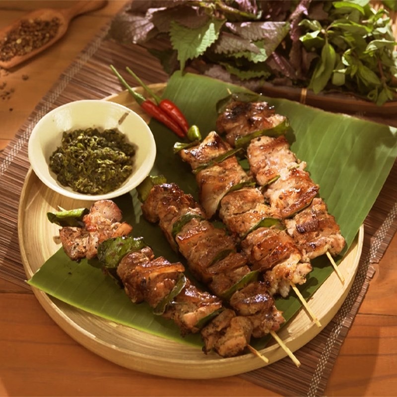 Thịt xiên nướng mắc khén thơm lừng, mang đậm hương vị của vùng núi Tây Bắc. Thịt mềm ngọt, cay cay, thơm nồng chấm cùng với nước chấm đặc trưng mang đến một hương vị mới lạ, thơm ngon khó cưỡng.
