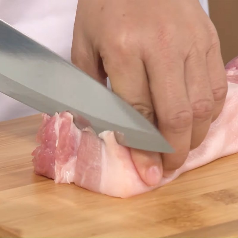- Cắt thịt heo thành các miếng mỏng bản to.