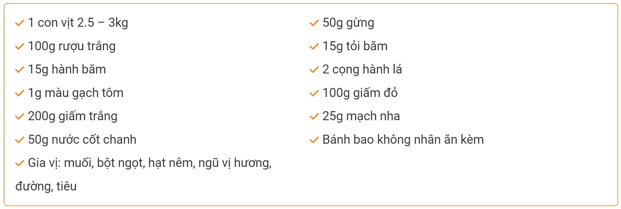 Hòa 3 muỗng canh rượu, 50g gừng đập dập, 2 muỗng canh muối, 150ml nước lạnh, khuấy đều. Sử dụng hỗn hợp này chà xát lên vịt từ bên trong ra bên ngoài để khử mùi hôi.