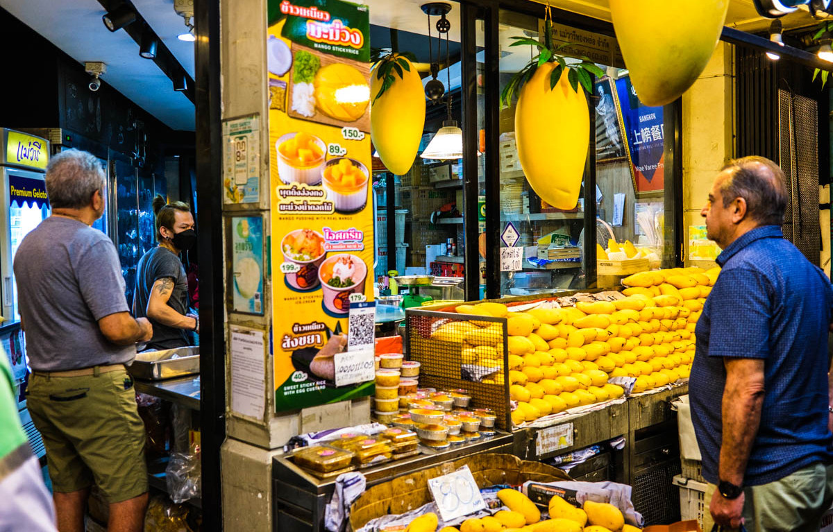 Đối với những người chỉ muốn mua xoài nguyên quả, chưa cắt, K Panich cho phép các nhà cung cấp của mình đặt chỗ bên ngoài cửa hàng và bán sản phẩm của họ.