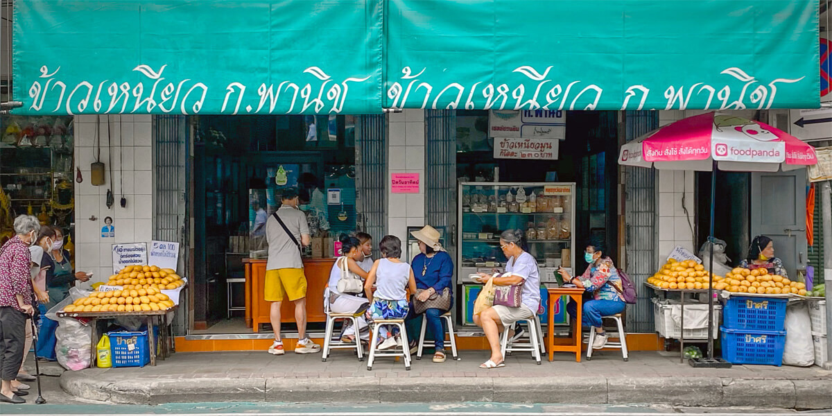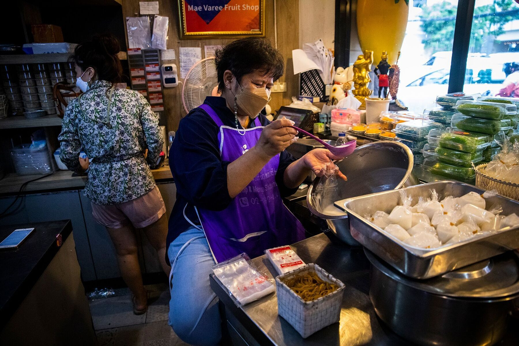Cửa hàng xôi xoài của bà Varee thu hút đông đảo cả người dân địa phưỡng lẫn du khách nước ngoài.