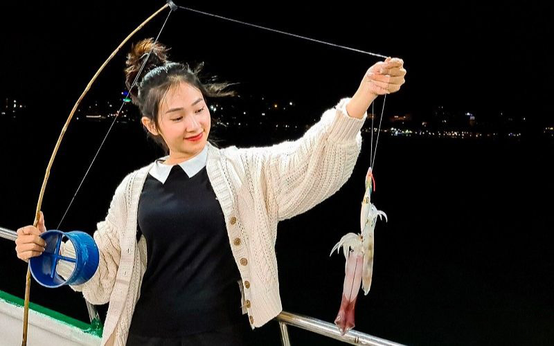 Khi mặt trời lặn đó cũng là thời điểm mà các ngư dân tại đây bắt đầu chuẩn bị nhổ neo và bắt đầu chuyến đi câu mực đêm. Thường thì thời gian câu mực sẽ kéo dài từ 7h tối đến 12 giờ khuya. Khi đi câu mực, du khách sẽ được trải nghiệm cảm giác lênh đênh trên biển vào buổi tối, cực kỳ khác lạ so với đi tàu thuyền trên biển vào buổi sáng.