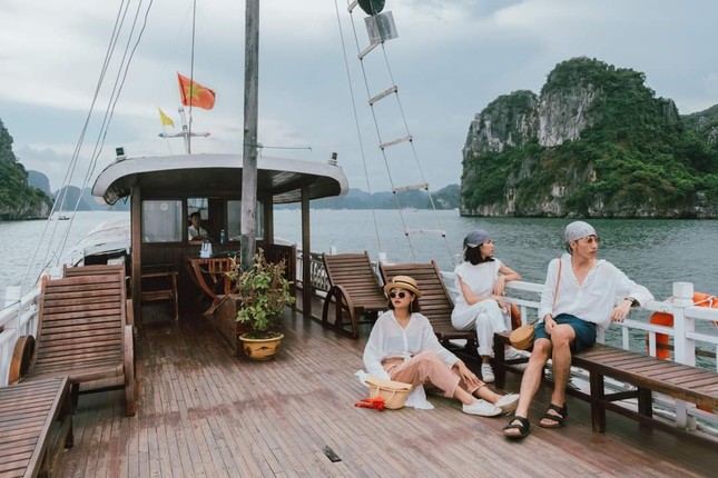 Vịnh Hạ Long là địa điểm được chàng trai ngoại quốc lựa chọn để kết thúc chuyến đi lần này. Anh chàng cùng hội bạn đã cùng thưởng thức buổi trưa trên tàu vừa chiêm ngưỡng cảnh quan hùng vĩ tại nơi đây. Bên cạnh đó, hoạt động khám phá hang động cũng khiến cả hội vô cùng thích thú.