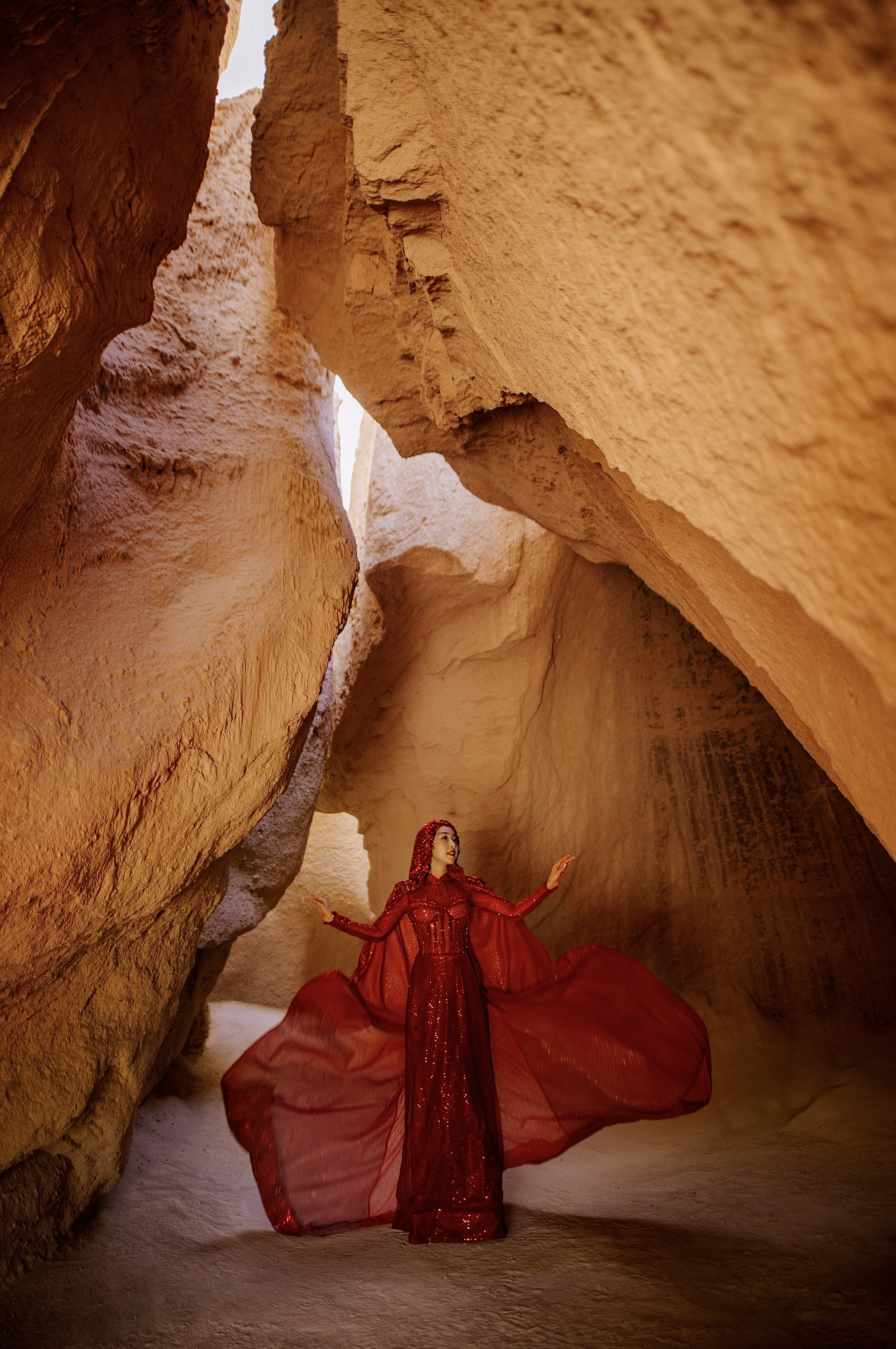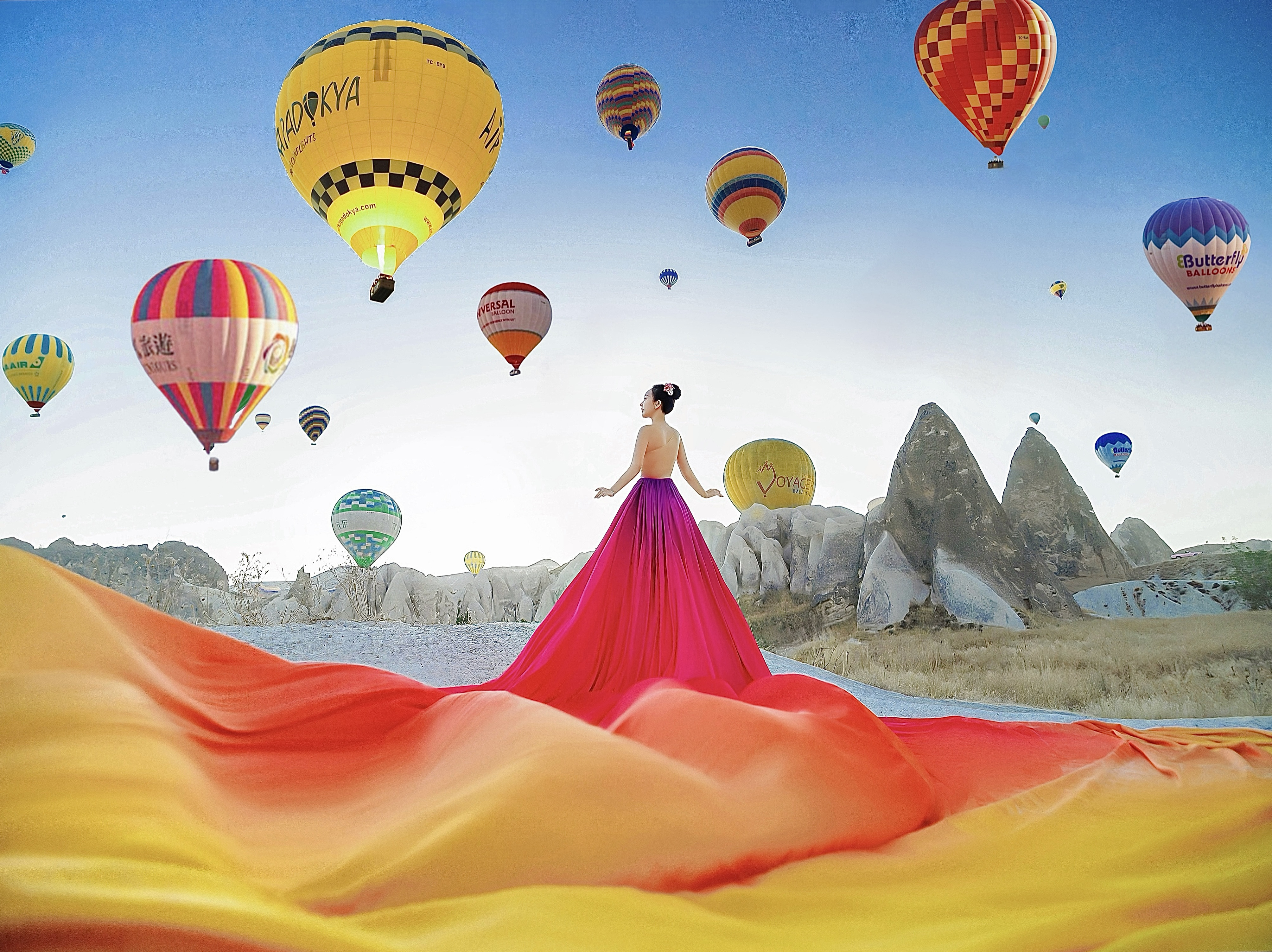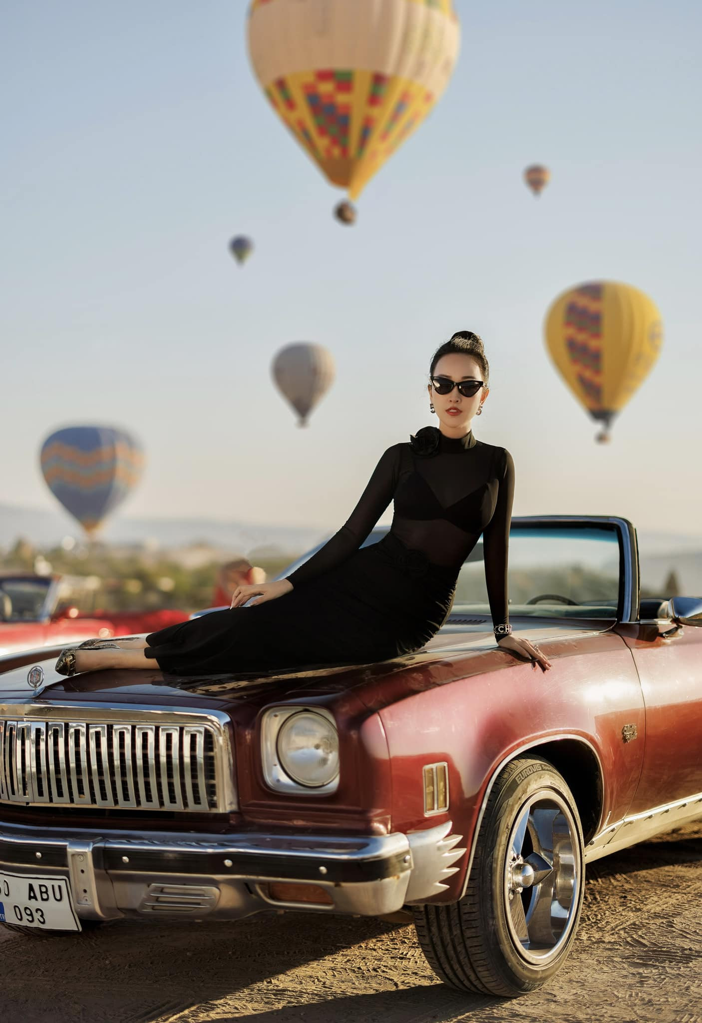Chưa kể thời gian khinh khí cầu bay rợp trời chỉ kéo dài trong khoảng 40 phút nên để có bộ hình đẹp, cả ekip phải chạy đua với thời gian, định hướng vị trí chụp sao cho phù hợp, lựa theo hướng gió hôm đó. Bên cạnh đó, đường ở khu vực này cũng gồ ghề, nhiều đất đá cát bụi khiến việc di chuyển khó khăn hơn,…”, chị Nhung nhớ lại buổi chụp hình đáng nhớ đầu tiên ở Cappadocia với khinh khí cầu.