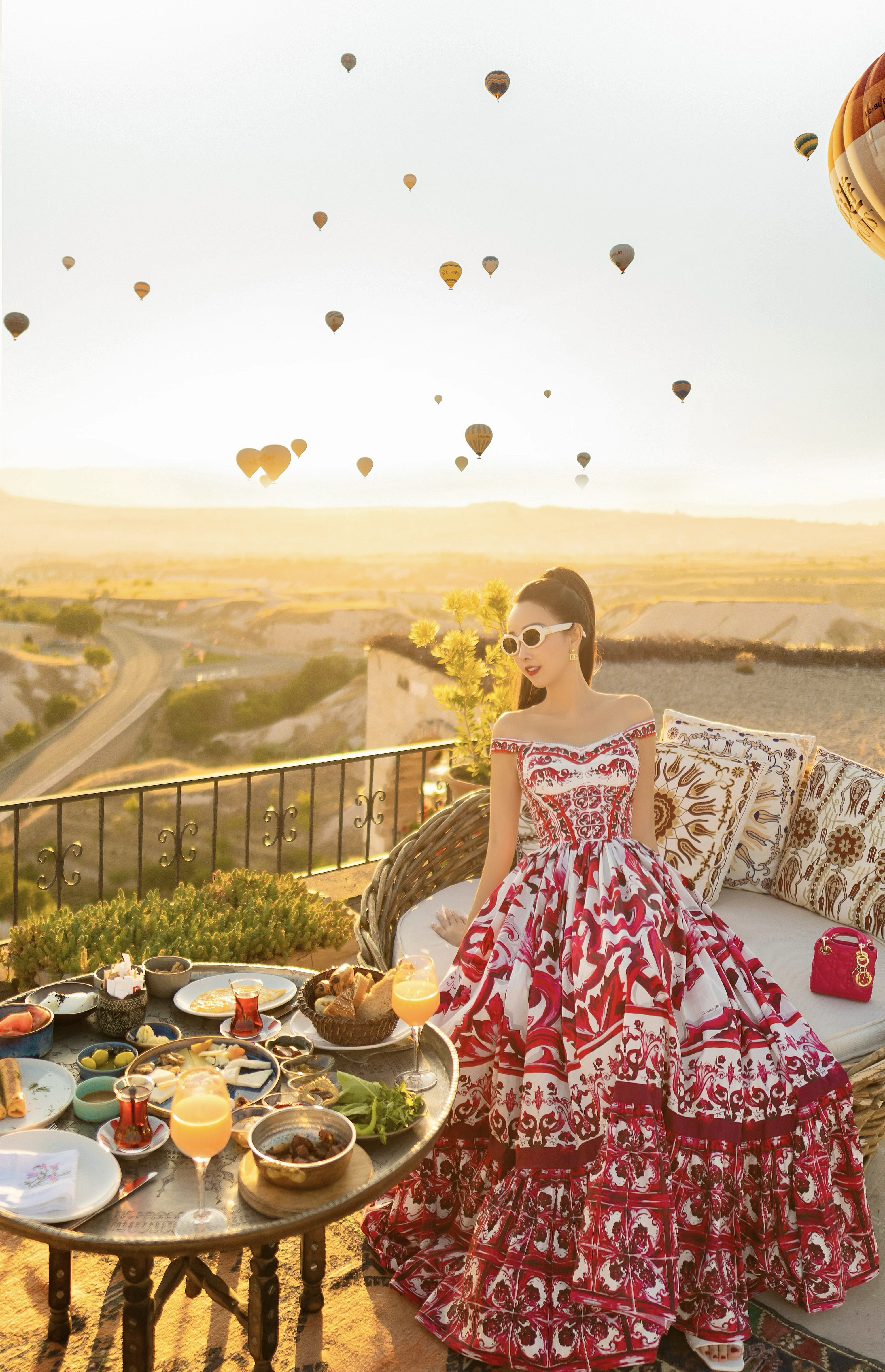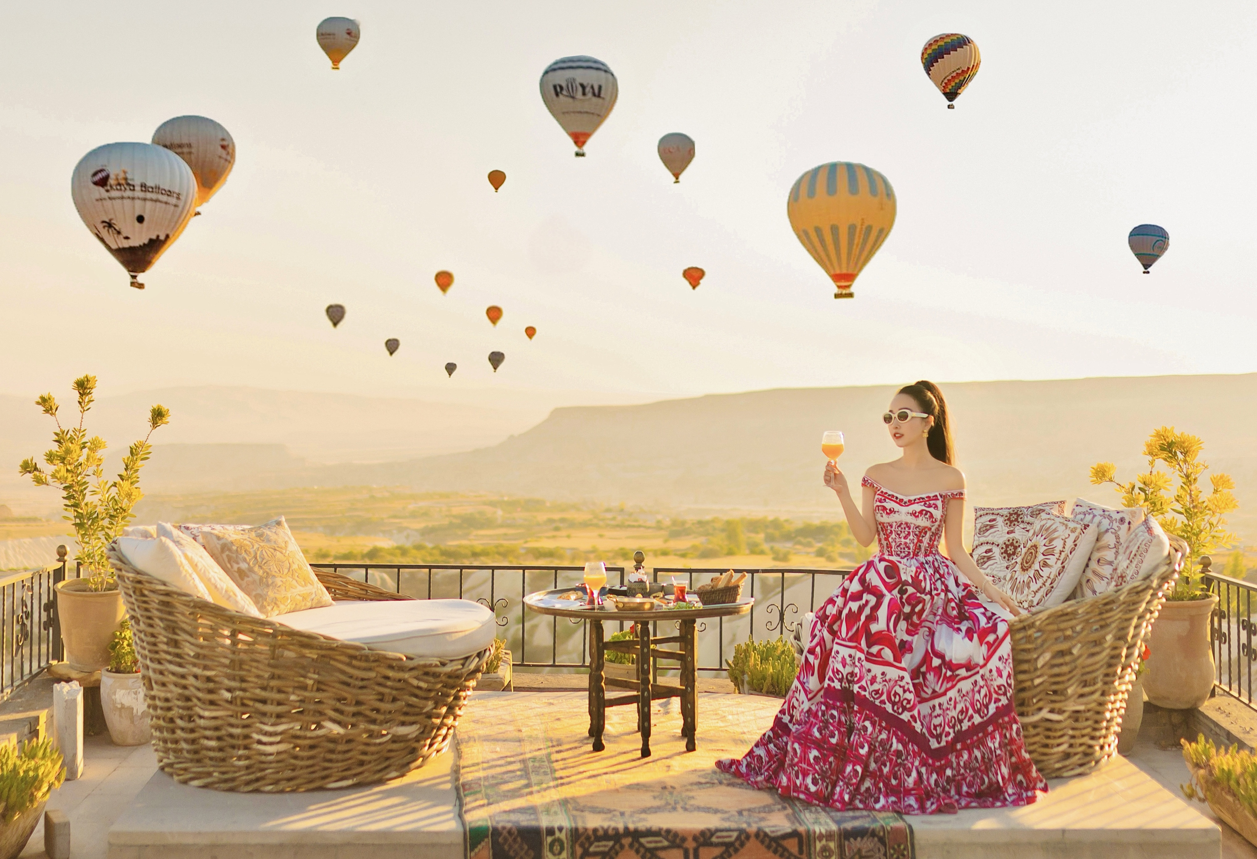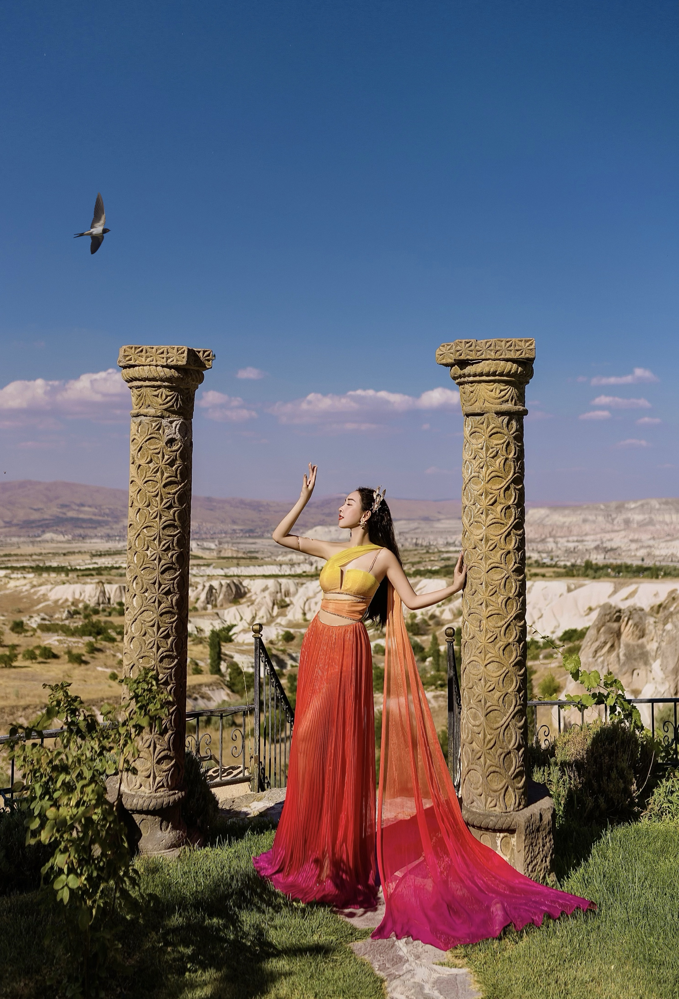 Thời điểm này, khu vực Cappadocia có tiết trời mát mẻ dễ chịu, không khí trong lành, thích hợp cho các hoạt động khám phá ngoài trời, hòa mình vào thiên nhiên. Trước đó, chị từng có cơ hội đặt chân tới một số quốc gia ở châu Âu và UAE, Úc, Nhật Bản, Maldives,…