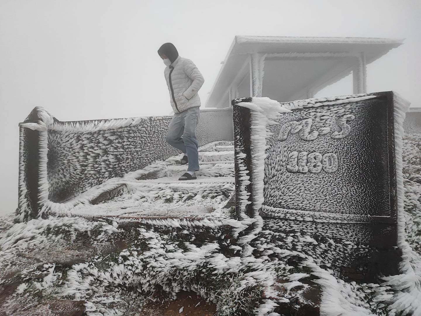 "Càng về trưa trời càng lạnh buốt, nhiệt độ ở mức -1 độ C, sương mù dày đặc. Du khách di chuyển lên đỉnh núi ngắm băng giá nên lái xe cẩn thận, quan sát kĩ, chuẩn bị trang phục ấm, giày dép chuyên dụng tránh trượt ngã", ông Chuyển cho hay.
