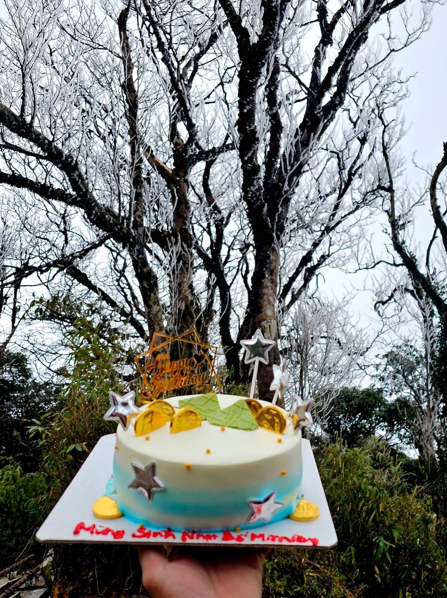 Vợ chồng anh Trường và ba con nhỏ (4 tuổi, 7 tuổi và 10 tuổi) thích thú rời khỏi xe để chạm vào băng giá. Hôm nay là sinh nhật anh Trường, gia đình chuẩn bị một chiếc bánh kem và cùng hát chúc mừng sinh nhật trong khung cảnh đặc biệt.