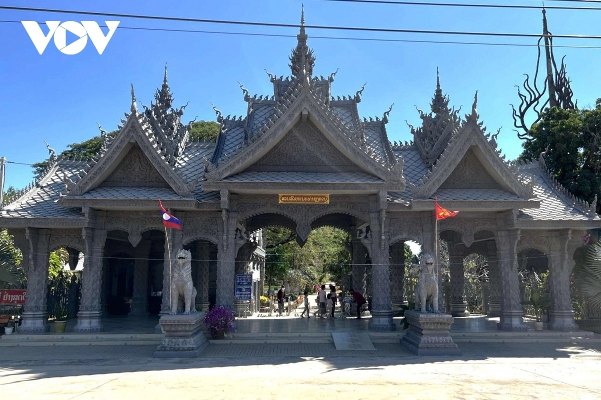 Ngay tại cổng ra vào đã gây ấn tượng mạnh mẽ cho du khách nhờ lối kiến trúc chùa tháp độc đáo của Lào với nhiều tầng mái, chóp mái cao, ở mỗi đầu mái là hình tượng cách điệu rắn thần Naga – một linh vật mà người Lào tin rằng sẽ bảo vệ và che chở cho con người.