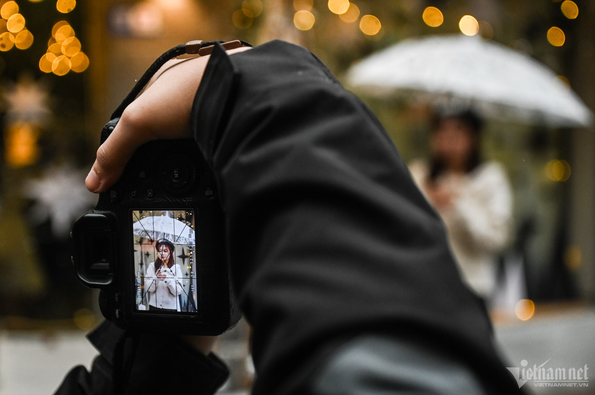 Yến Nhi (đến từ Nam Định) cho biết, đến Hà Nội chơi và được bạn rủ đi chụp ảnh check-in Noel sớm. Để tạo không khí, cô gái đã thuê thêm một bộ váy màu đỏ. "Các quán trang trí đẹp nhưng đông quá. Dù là ngày giữa tuần mà vẫn phải xếp hàng mới tới lượt. Tôi phải chờ 15 phút, chụp ảnh được 2 phút thì nhường vị trí này cho người khác", Nhi nói.