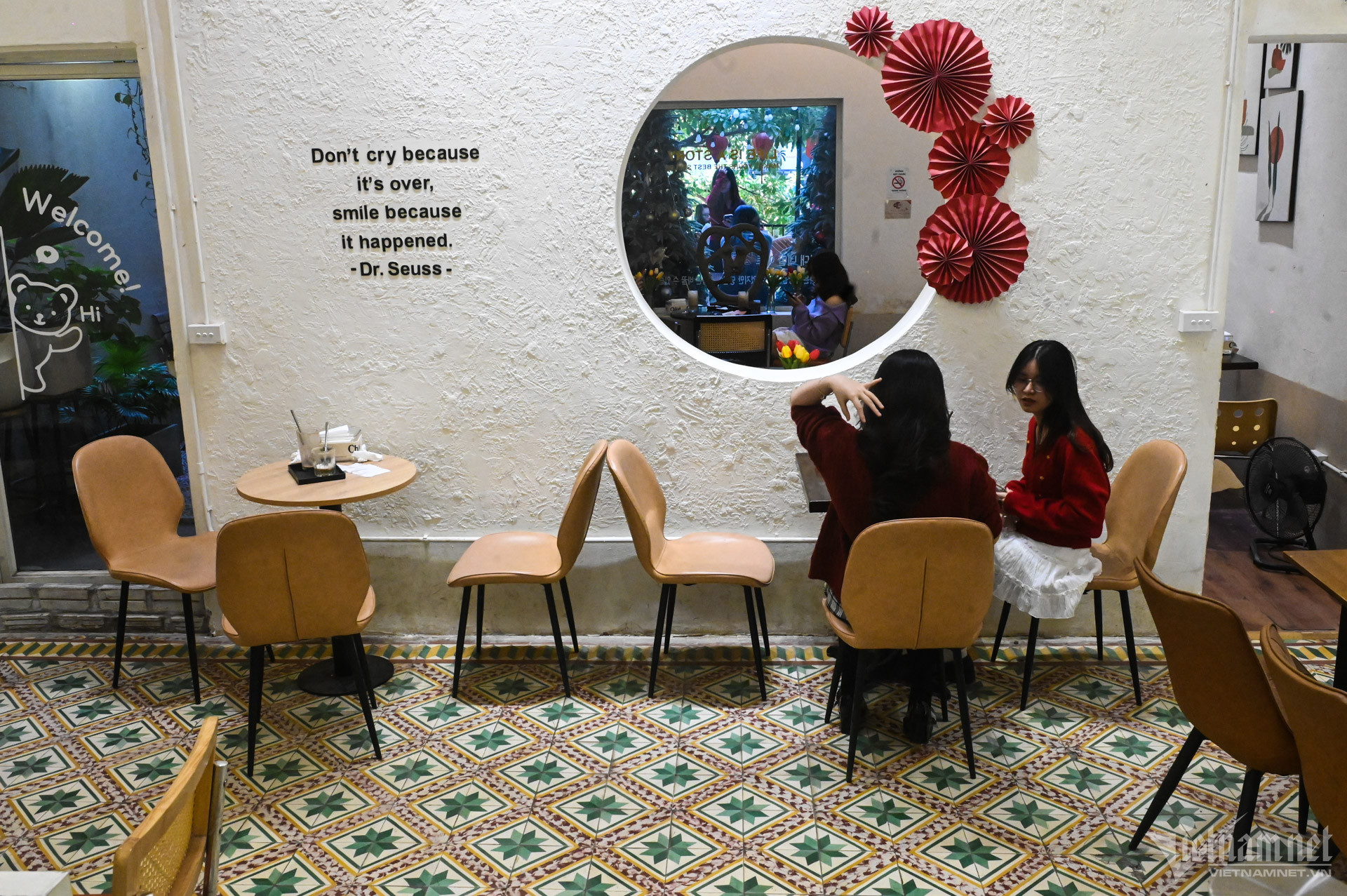 Bạn Vy, 20 tuổi (bên phải, quận Bắc Từ Liêm) có thói quen đi check-in các quán cà phê cùng bạn bè, đặc biệt vào những dịp lễ để lưu giữ kỷ niệm. "Chiều nay mình được nghỉ học nên tranh thủ đi cà phê chụp ảnh. Quán có không gian ngoài trời rộng nên là một điểm cộng, không phải bon chen quá nhiều", Vy nói.
