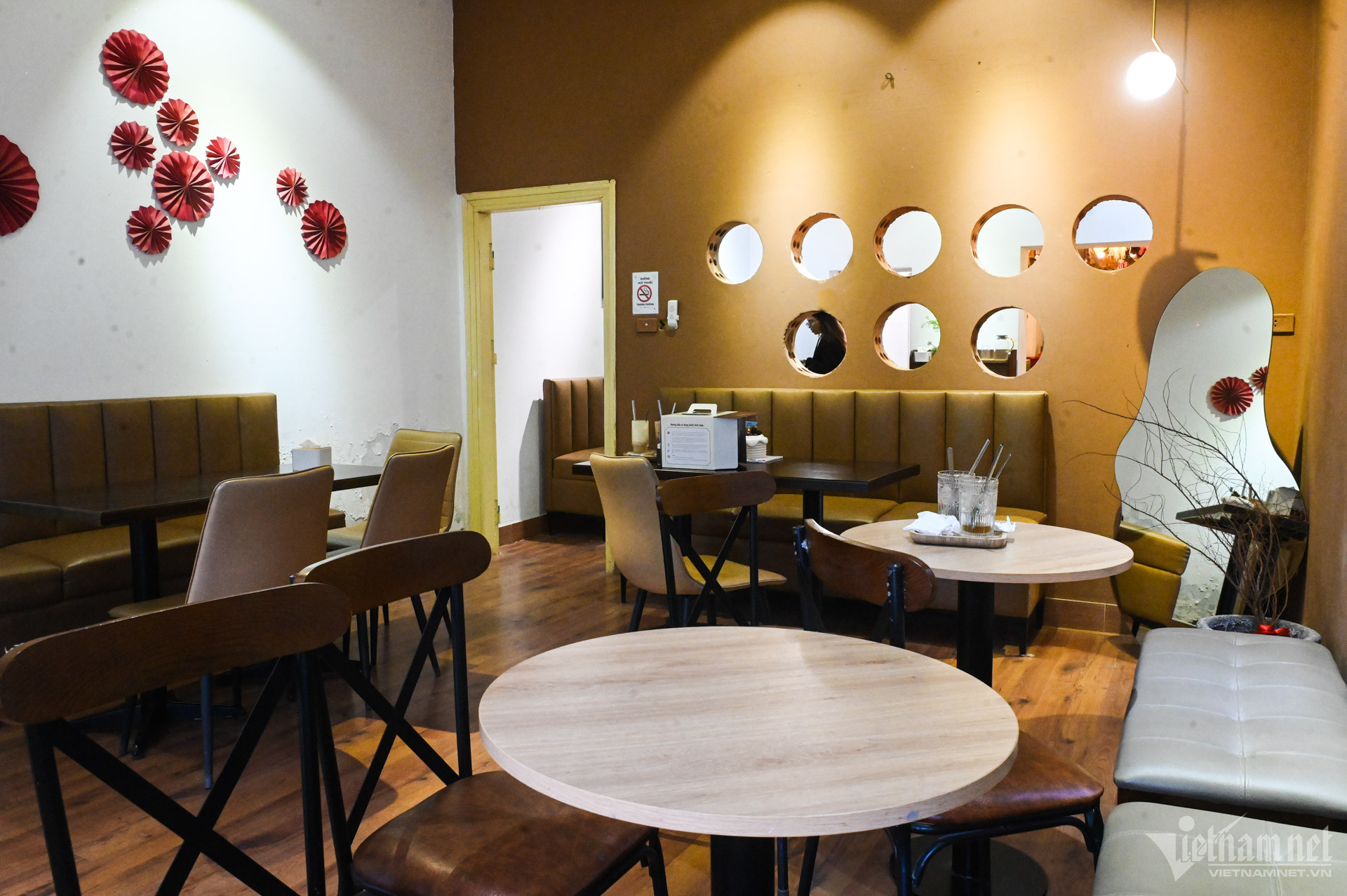 Tuy nhiên phần lớn khách hàng đến đây chỉ tập trung ở khu vực cây thông để chụp hình. Các dãy bàn ghế trong nhà lúc này vắng vẻ.