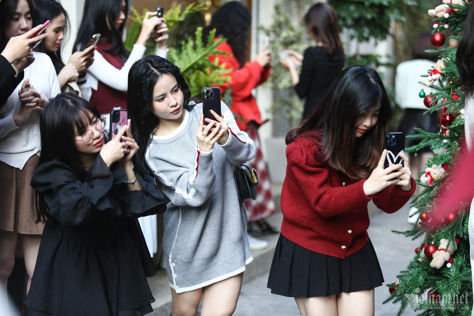 15h30 chiều 7/12, không giang ngoài trời của quán này chật cứng. Hàng dài khách hàng đứng chờ đến lượt chụp ảnh.
