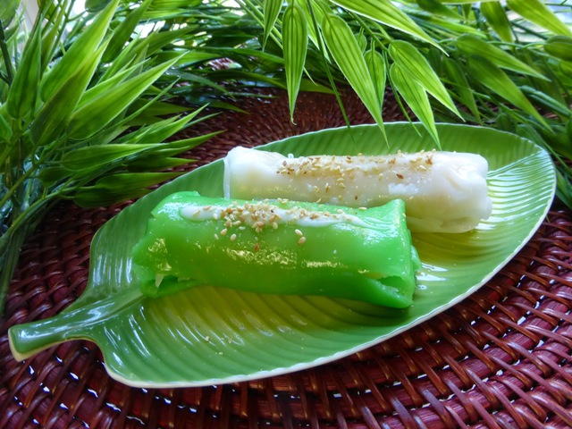Bột bánh làm từ bột gạo, nước cốt dừa, đường, muối, nước lạnh và mè rang. Bánh cuốn ngọt có nhân đậu xanh, dừa, hoặc khoai môn, tùy từng cửa hàng. Bánh không đòi hỏi sự cầu kỳ công phu nhưng yêu cầu người gói phải có chút khéo léo bể cuộn bánh thành hình đẹp mắt.