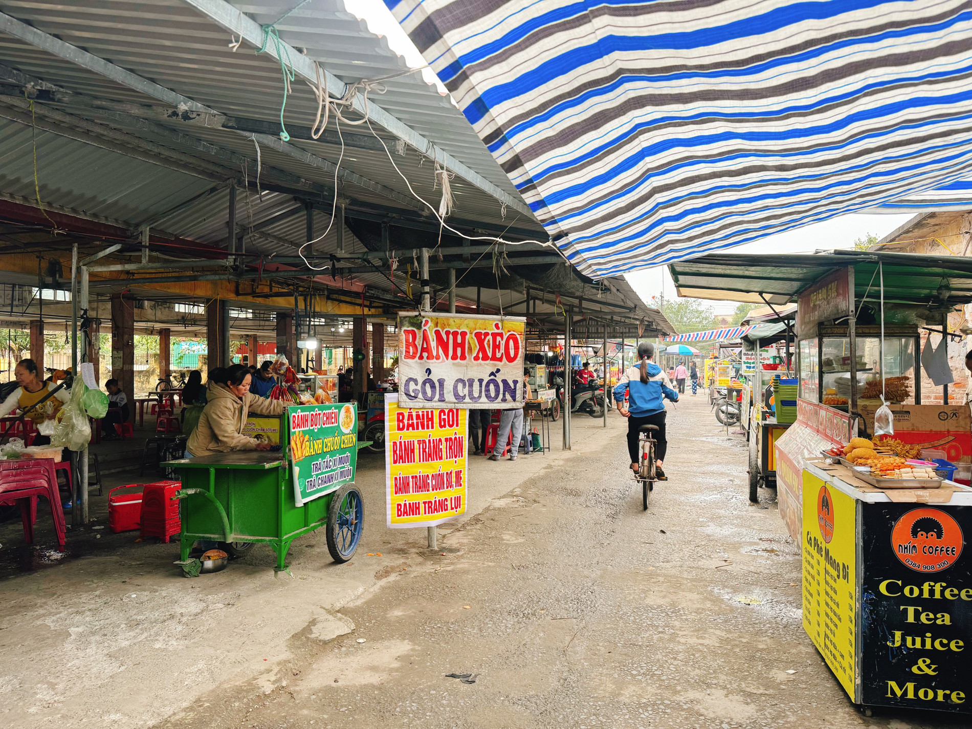 Các gian hàng, dãy chợ đều được phân chia, thiết kế quy củ, ngăn nắp, khoa học. Trong đó, khu vực các gian chợ cổ, xưa cũ thì bày bán các mặt hàng truyền thống, còn dãy nhà mái bằng bán quần áo, giày dép thời trang,… Khu ẩm thực được sắp xếp phía cuối chợ, thu hút những tín đồ ẩm thực tới thưởng thức quà quê.