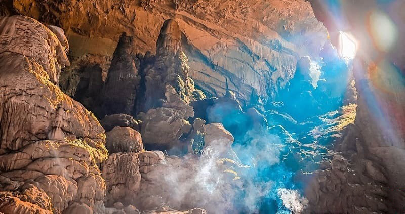 Hang Dơi hay còn gọi là hang Kho Mường vì nó thuộc bản Kho Mường. Hang có những khối nhũ đá vôi với rất nhiều loài dơi trú ngụ tại đây. Càng đi vào sâu, bạn sẽ càng thấy được không gian rộng lớn với nhiều khối nhũ đã với hình dạng khác nhau.