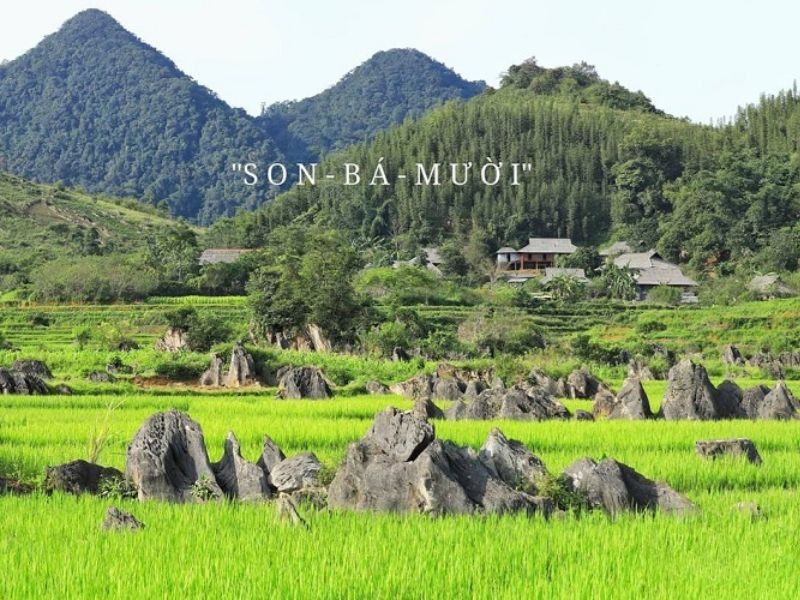 Son – Bá – Mười là bao gồm 3 bản thuộc xã Lũng Cao. Khu vực này có khí hậu ôn hòa, mát mẻ với nhiệt độ dao động từ 18 đến 22 độ C. Đây là cụm bản còn giữ được nhiều tập tục của người Thái với nhà sàn đặc trưng. Tham quan bản Son – Bá – Mười, bạn sẽ được tận hưởng không gian yên bình giữa núi hon hùng vĩ.