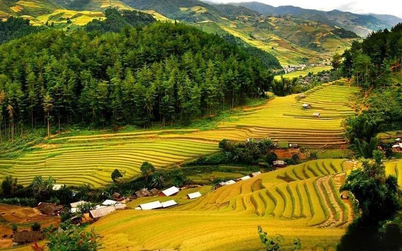 -Tháng 9 – tháng 10: Đây là thời điểm lý tưởng nhất cho bạn. Đến đây bạn sẽ tận mắt chiêm ngưỡng hình ảnh ruộng bậc thang được phủ bởi màu vàng của lúa, đẹp tựa như tranh vẽ.