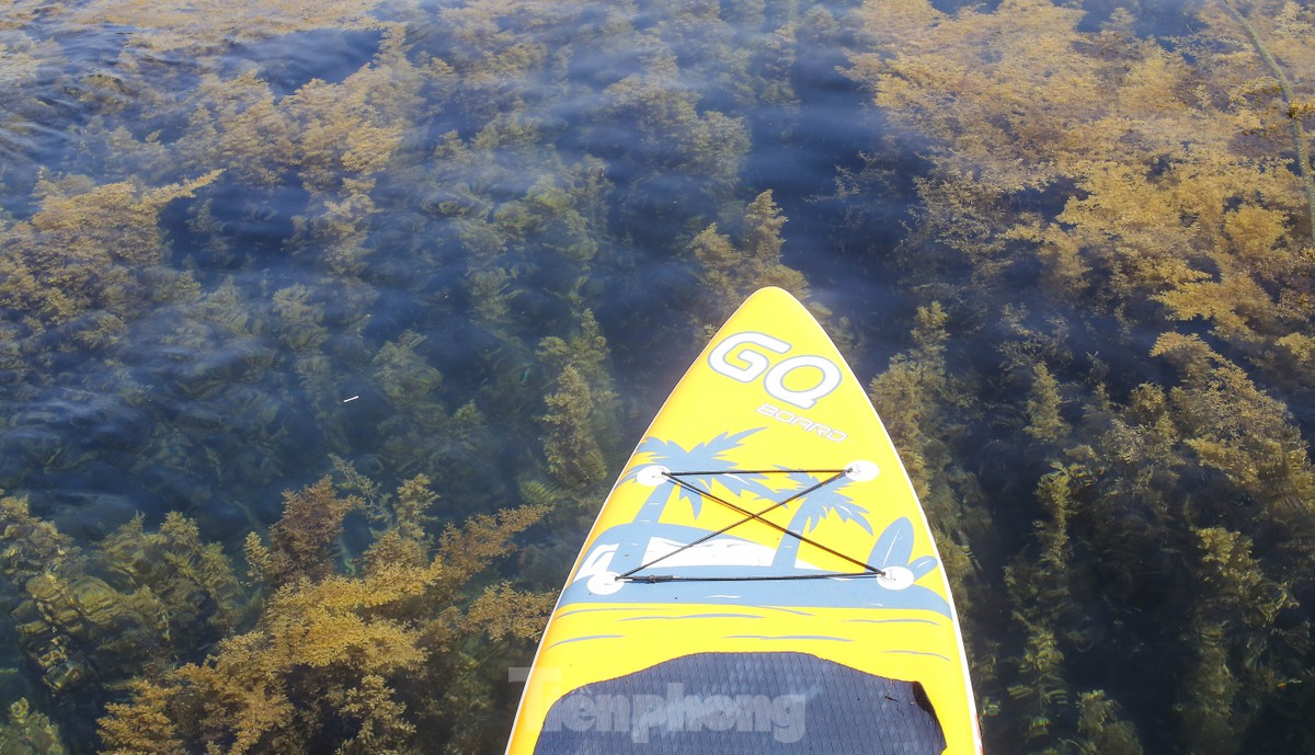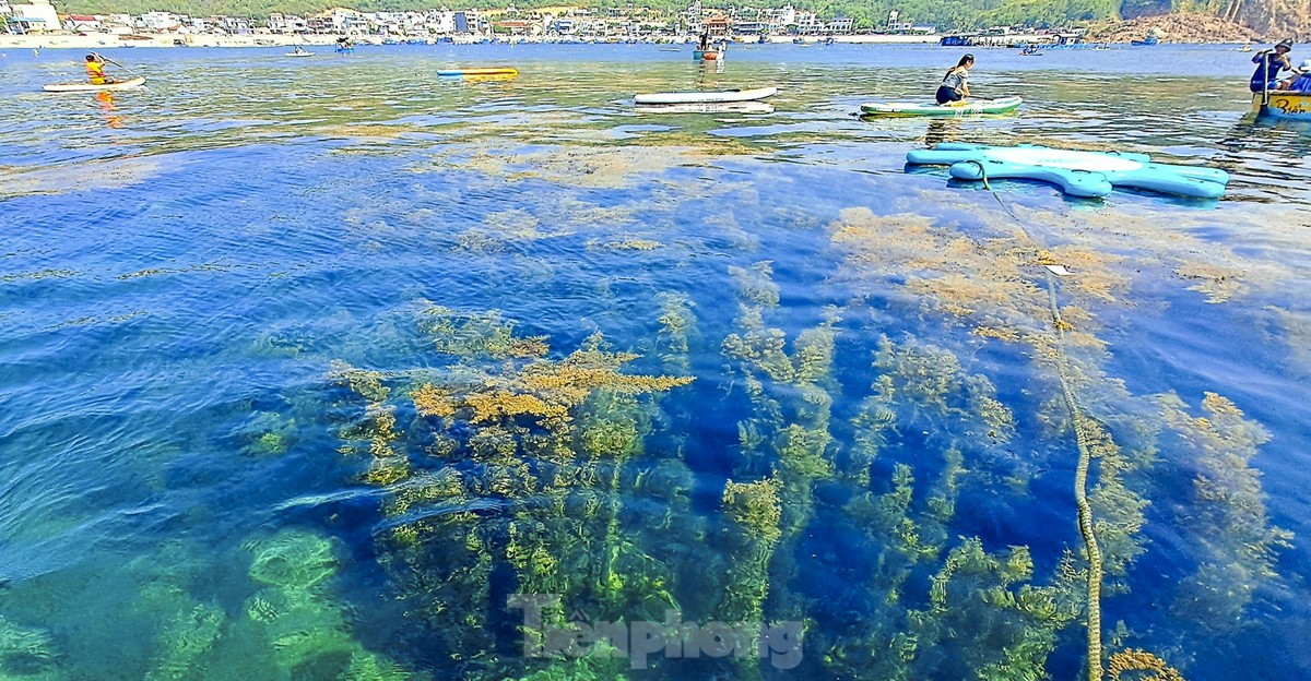 Làng chài Nhơn Hải, TP. Quy Nhơn, Bình Định mùa này nhìn từ trên cao mặt biển tựa "cánh đồng vàng" với những bãi rong mơ trải dài vô cùng đẹp mắt.