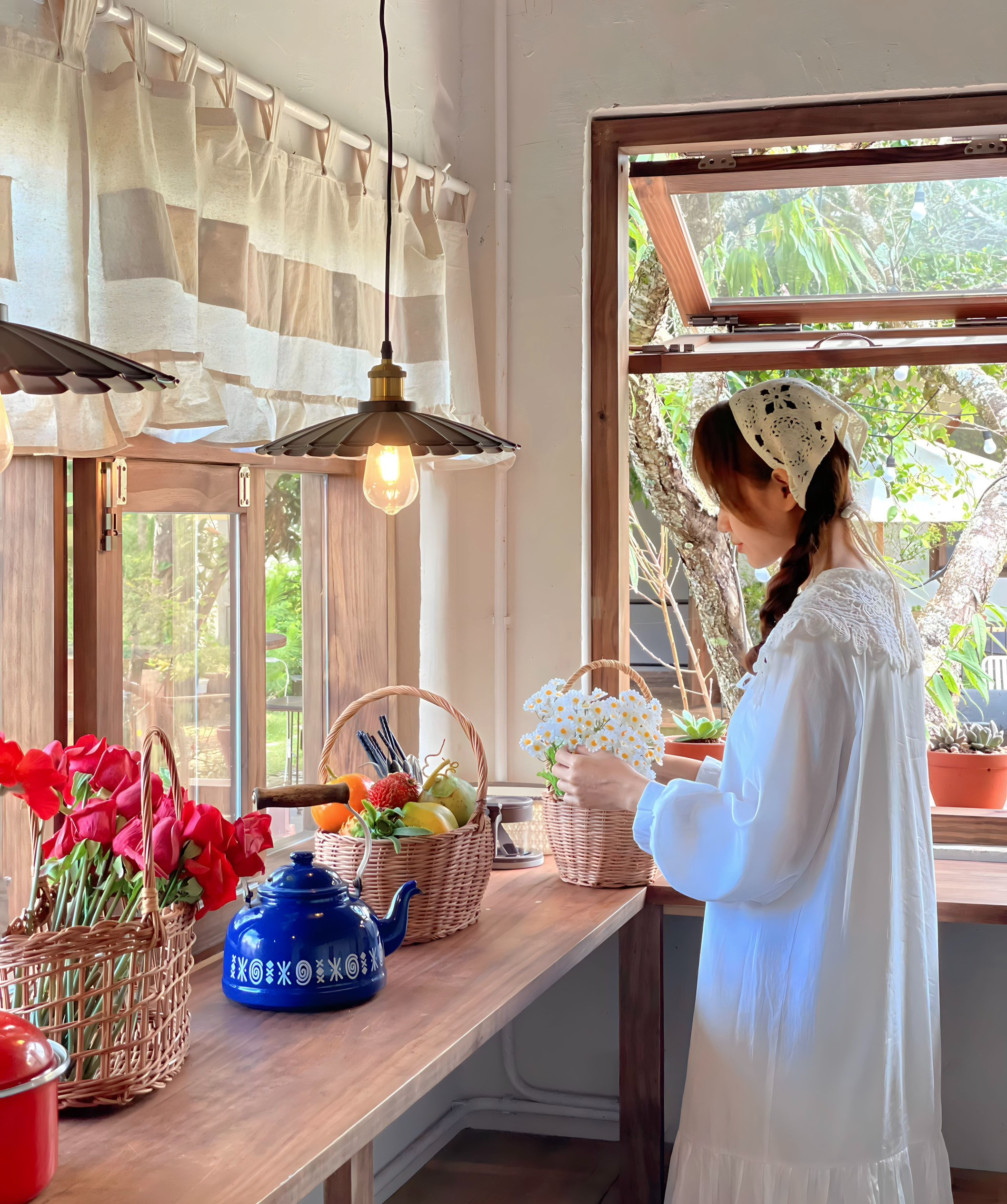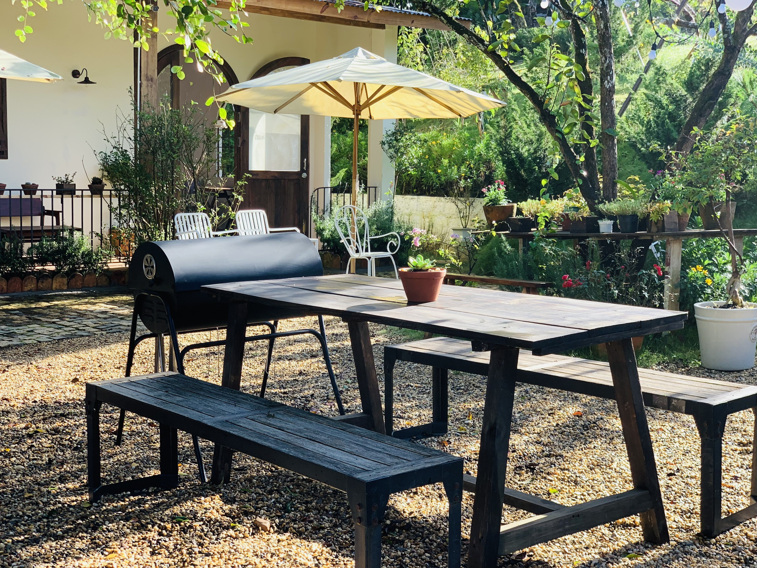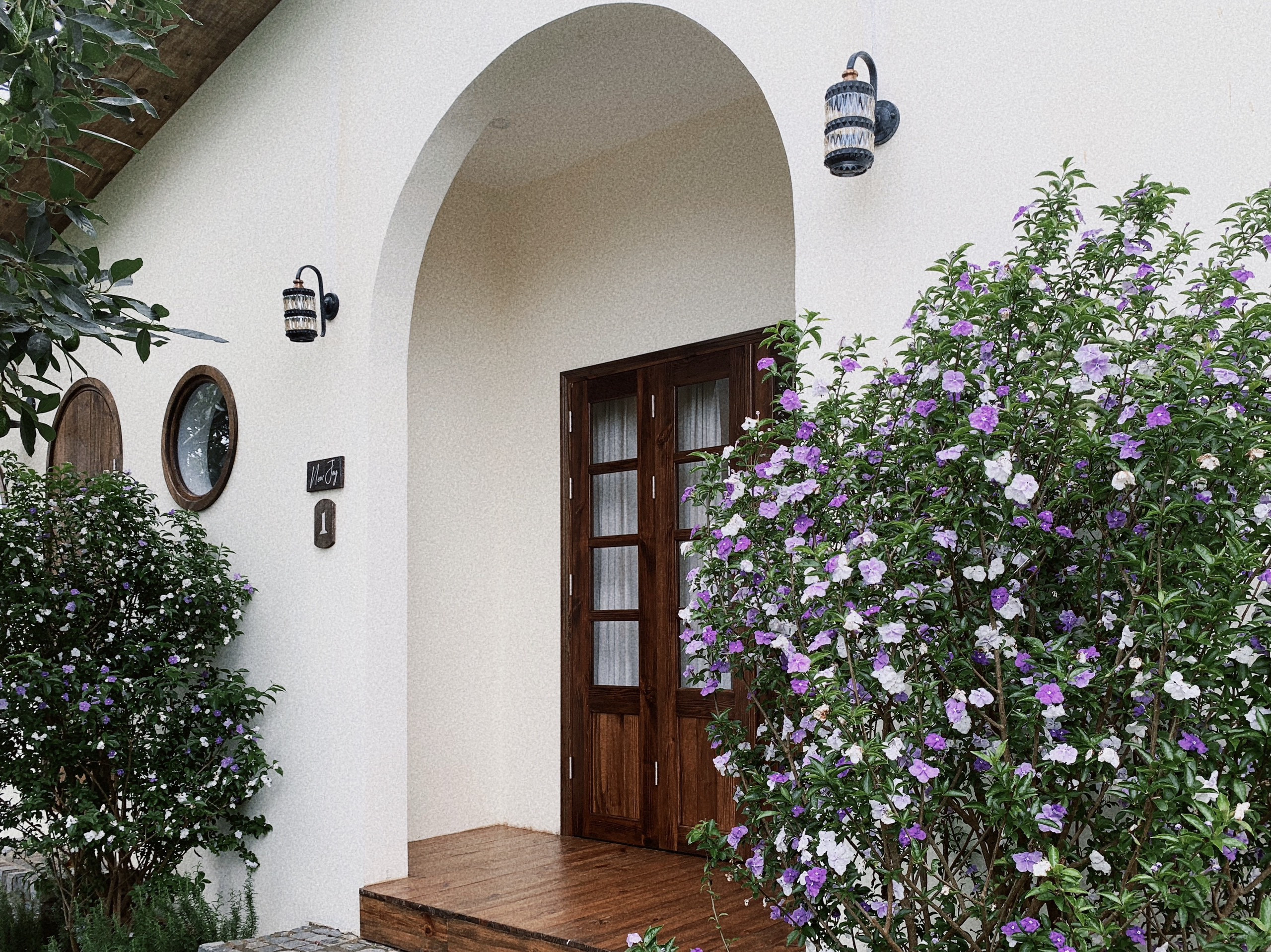 Xung quanh homestay, gia chủ cũng đầu tư chăm sóc, trồng thêm nhiều giống cây xanh và các loài hoa đa màu sắc để tô điểm không gian sống thêm phần đẹp mắt như hương thảo, hoa hồng, hoa cúc, nhất chi mai, lài nhật, dã quỳ,…
