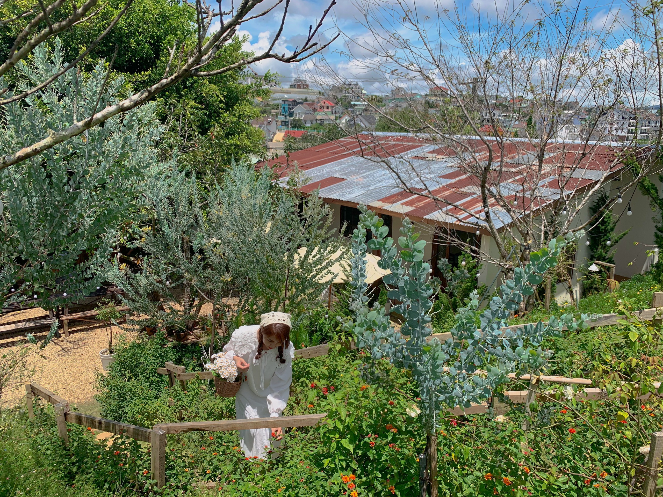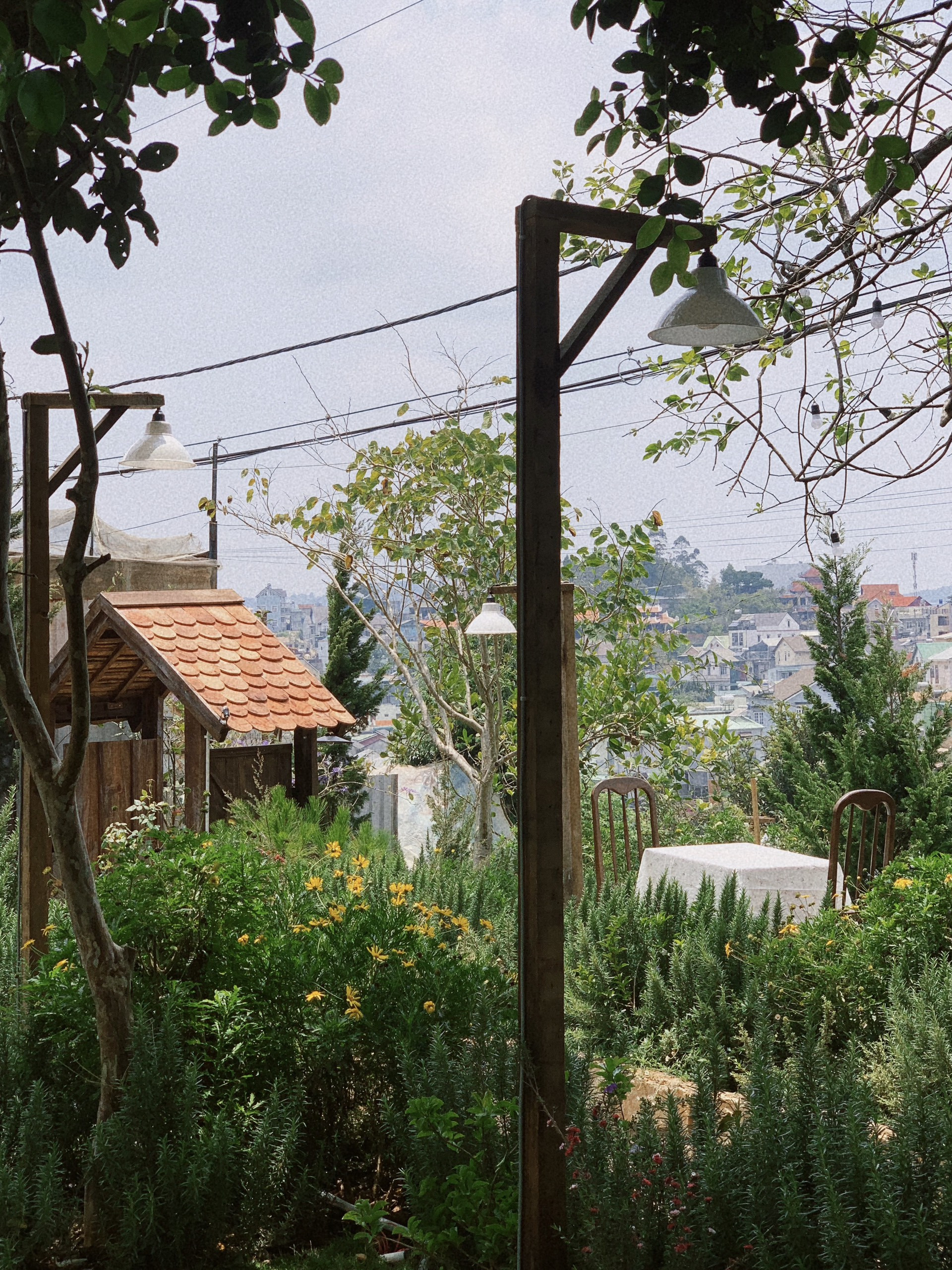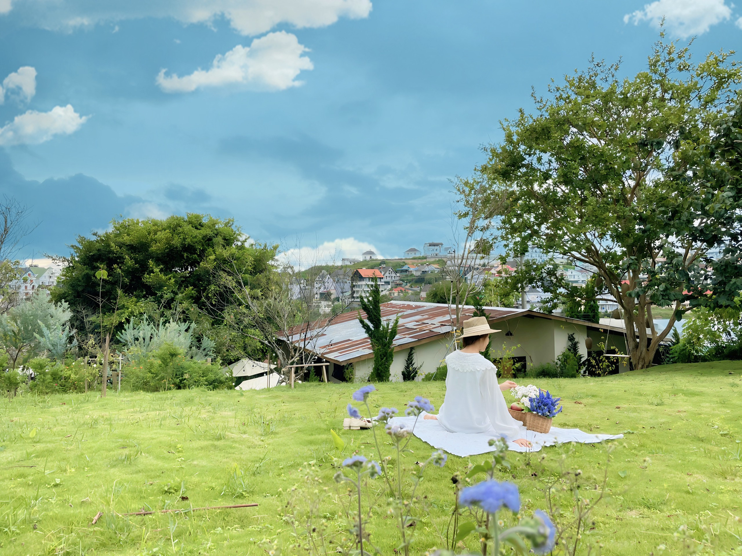 Còn phần diện tích 1.000m2 phía trên đồi được bố trí trồng cỏ và cây xanh, tạo góc thư giãn trong lành, xanh mát. Từ khu vực này, các thành viên có thể mở rộng tầm nhìn ra xa, ngắm cảnh Đà Lạt tuyệt đẹp từ trên cao và chụp hình thỏa thích.