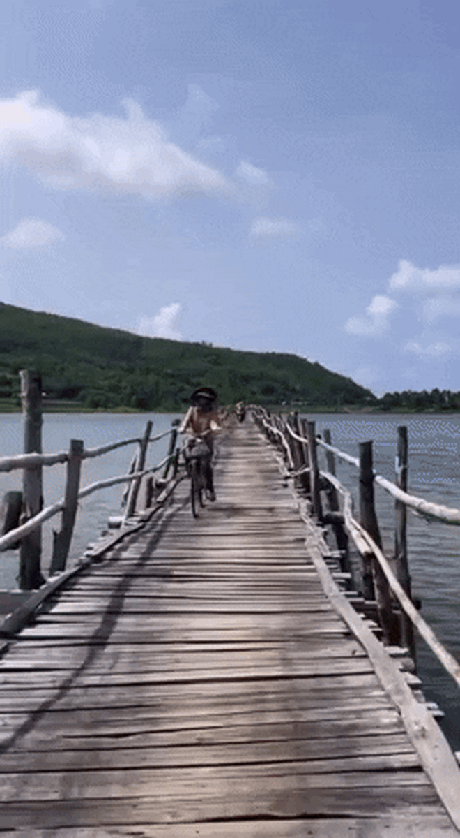 Nếu là người ưa cảm giác mạnh, bạn có thể thử thách chạy xe máy qua cầu, dù không phải ai cũng đủ can đảm lái xe đi qua dù chỉ 1 lần, nhất là khi nghe âm thanh lộc cộc của từng tấm gỗ mà bạn chạy qua. Chưa kể cây cầu này lại dài tới vài trăm mét và cần hơn 5 phút vừa lái vừa run mới có thể đi từ đầu bên này sang đầu bên kia. Tuy nhiên càng đi thì cảm giác lo lắng, hồi hộp sẽ được thay thế bằng sự thích thú.