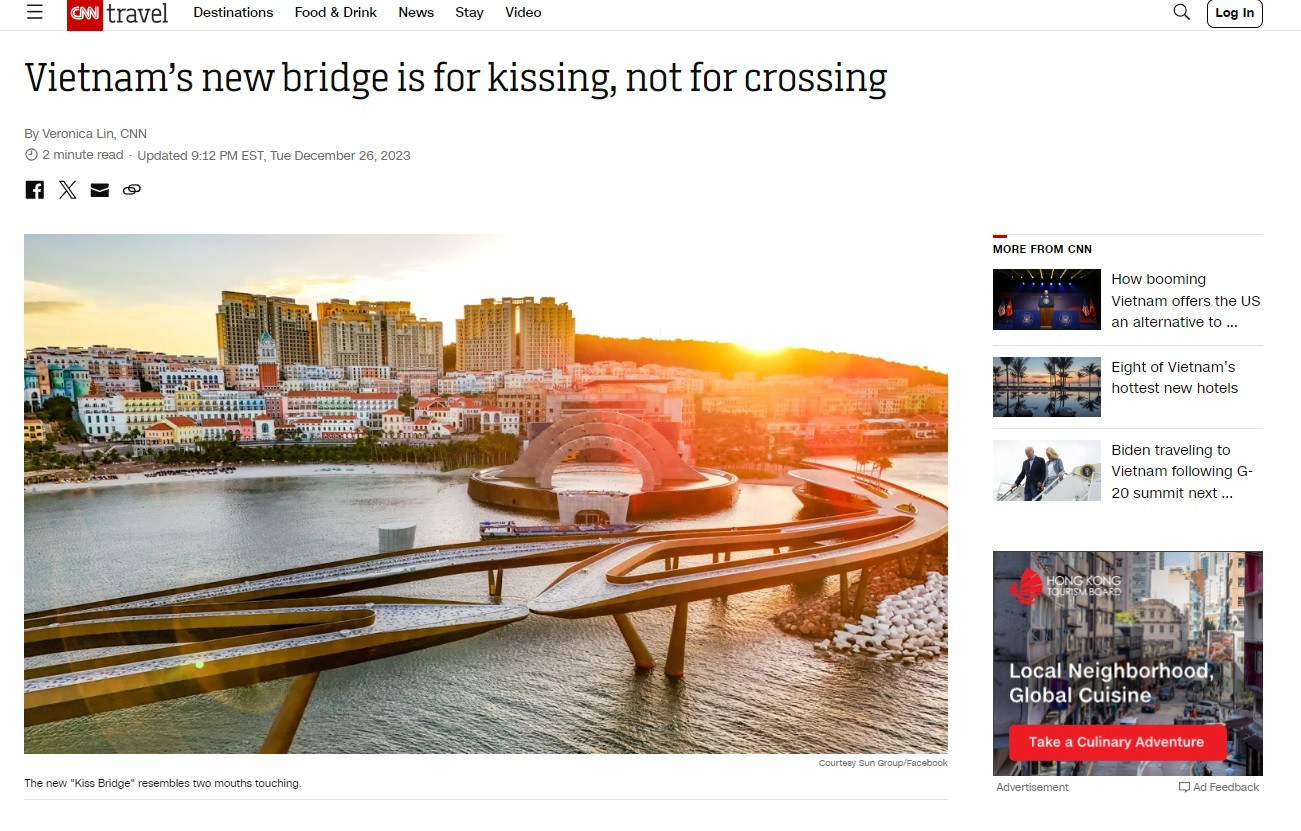 Bài viết với tựa đề "Vietnam’s new bridge is for kissing, not for crossing" (tạm dịch: Cây cầu mới của Việt Nam là để hôn nhau chứ không phải để băng qua) được đăng tải trên CNN để nói về cây Cầu Hôn (Kiss Bridge) vừa chính thức được khánh thành hôm 22/12 ở Phú Quốc.
