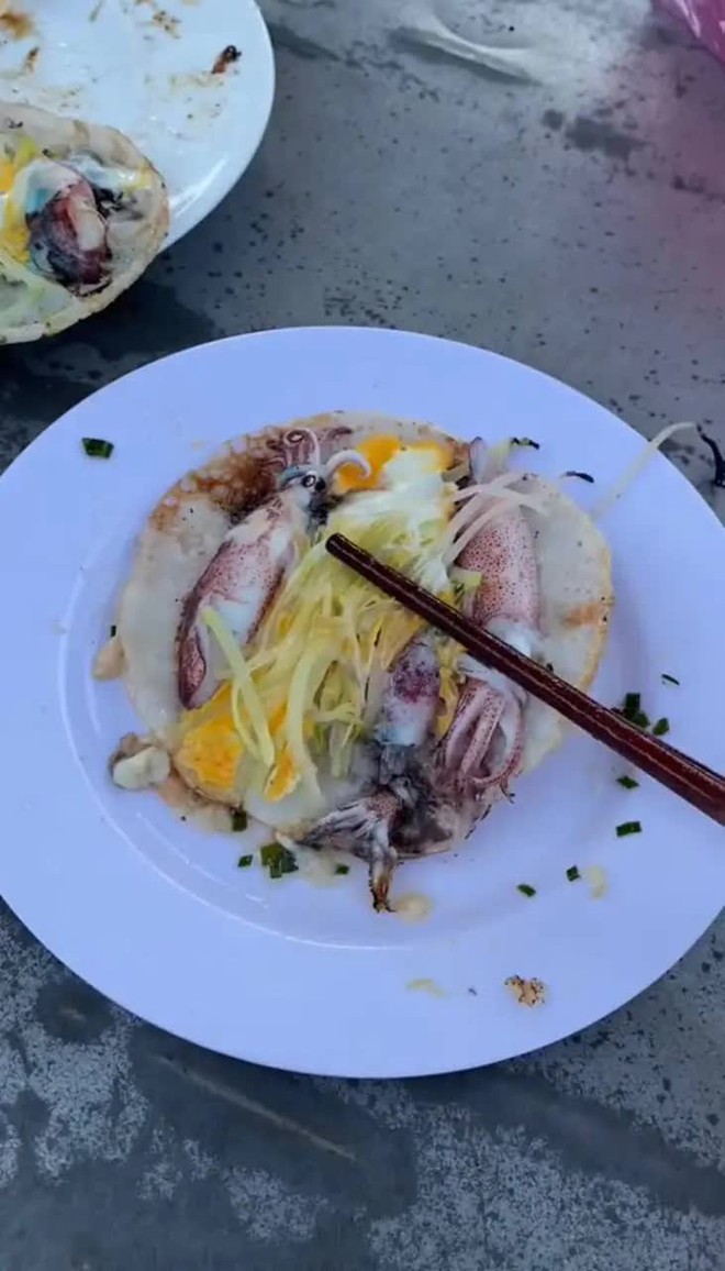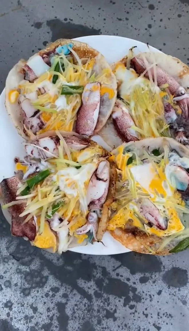 Cụ thể, những chiếc bánh xèo với nhân đầy ắp mực tươi, loại mực ống chỉ to tầm 2 ngon tay. Ăn kèm với rau sống tươi xanh cùng nước chấm đậm đà. Đây là một món ăn không quá mới lạ, món bánh xèo mực này cũng vô cùng nổi tiếng ở Phú Yên hoặc Nha Trang. Thế nhưng, điều đáng chú ý là những chiếc bánh xèo mực đầy đặn này ở Phú Quốc chỉ có giá từ 5.000 đồng.