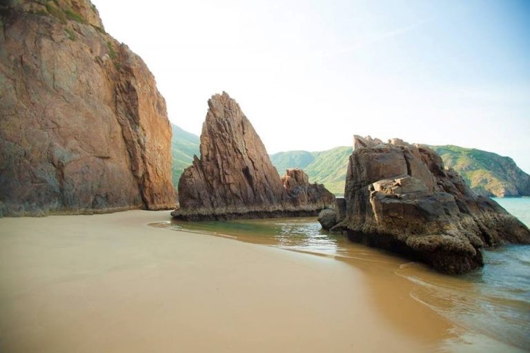 Nước biển Kỳ Co có hai màu, nước trong cạn gần bờ có màu xanh lam, còn phần biển ở ngoài xa có màu sẫm. Để tới được đây, du khách có hai lựa chọn là đây canô hoặc chạy xe máy theo những con đường vòng quanh núi.