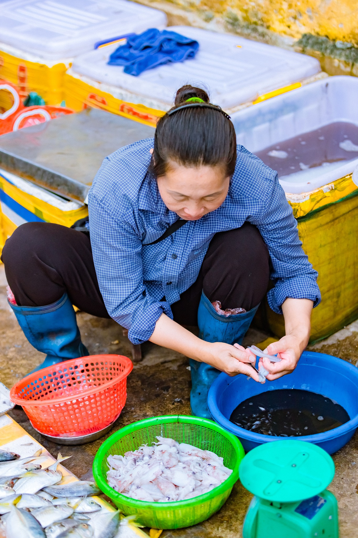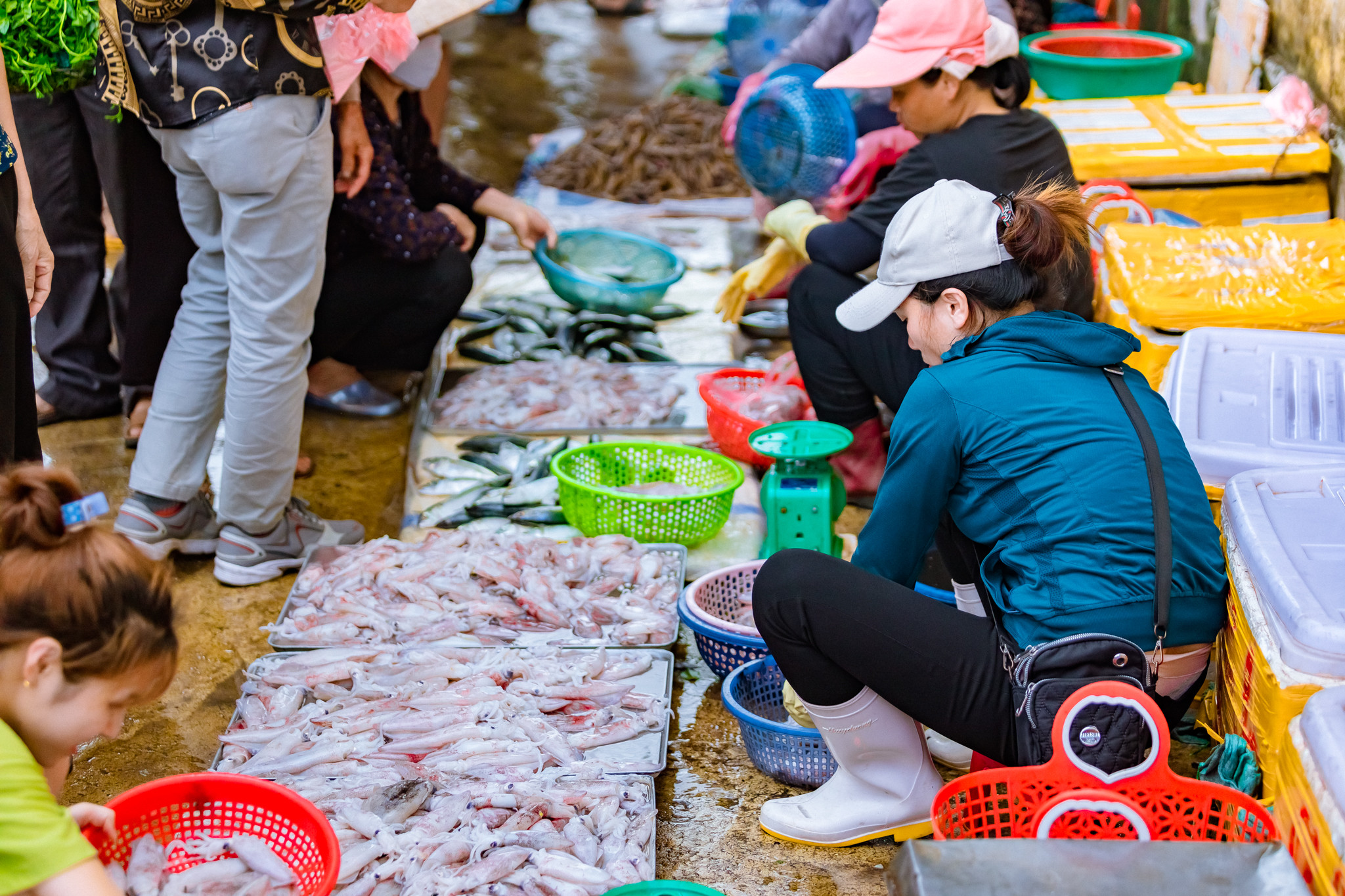 Vì là khu chợ giáp biển nên hàng ngày, bà con thường chở về đầy ắp các mặt hàng thủy hải sản đa dạng để buôn bán tại đây. Thủy, hải sản như tôm, cá, mực, bề bề, ốc,…, được đánh bắt trong ngày nên đảm bảo tươi rói, giá cả lại phải chăng nên rất được người địa phương và du khách ưa chuộng, mua về chế biến, thưởng thức.