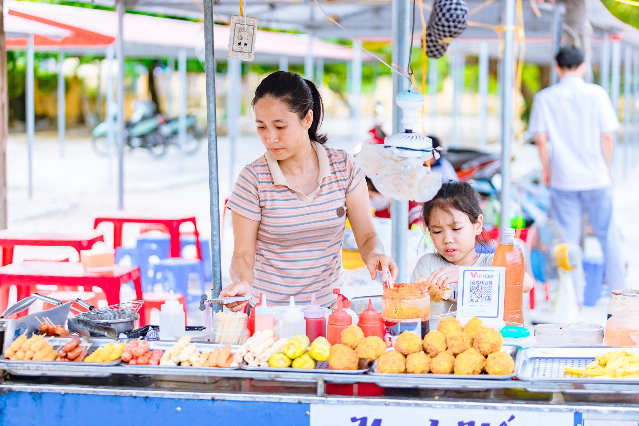 Ngoài các thức quà truyền thống, gắn bó với bao thế hệ người dân địa phương, ở chợ Bể còn bày bán một số món ăn vặt mới, phục vụ nhu cầu ăn uống, trải nghiệm ẩm thực đa dạng của cả người lớn lẫn trẻ em.