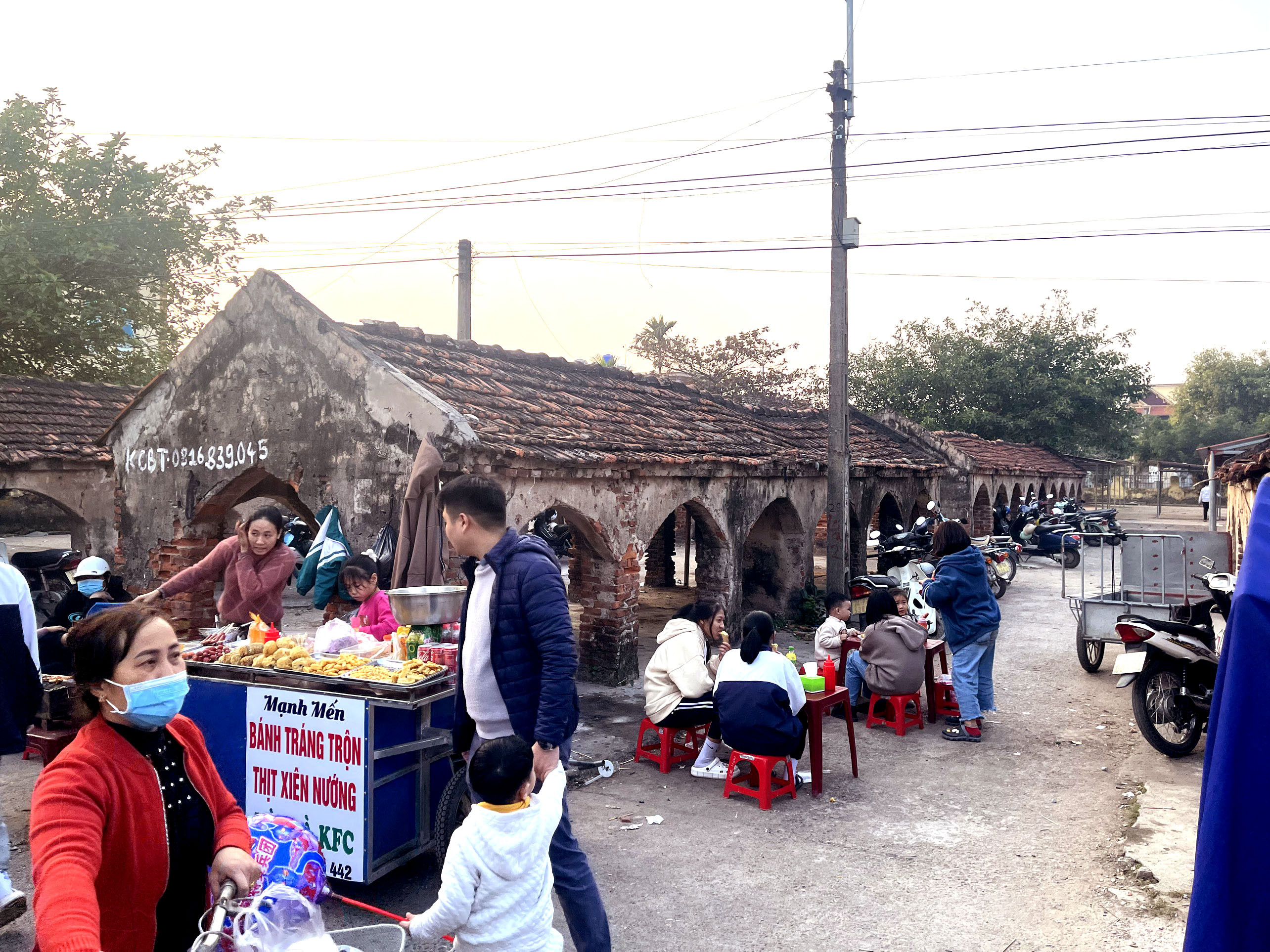 Cứ độ cuối chiều, sau giờ tan học, nhiều em học sinh trên địa bàn huyện lại tìm đến đây, lấp đầy bụng đói bằng nhiều món ăn vặt như bánh mì thịt nướng, nem cuốn, bánh tráng trộn,… với giá bình dân, chỉ từ 5.000 – 7.000 đồng/chiếc,… Tiếng bà con buôn bán, gọi mời khách, tiếng đám trẻ trò chuyện, nô đùa khiến khung cảnh khu chợ càng thêm đông vui, nhộn nhịp.