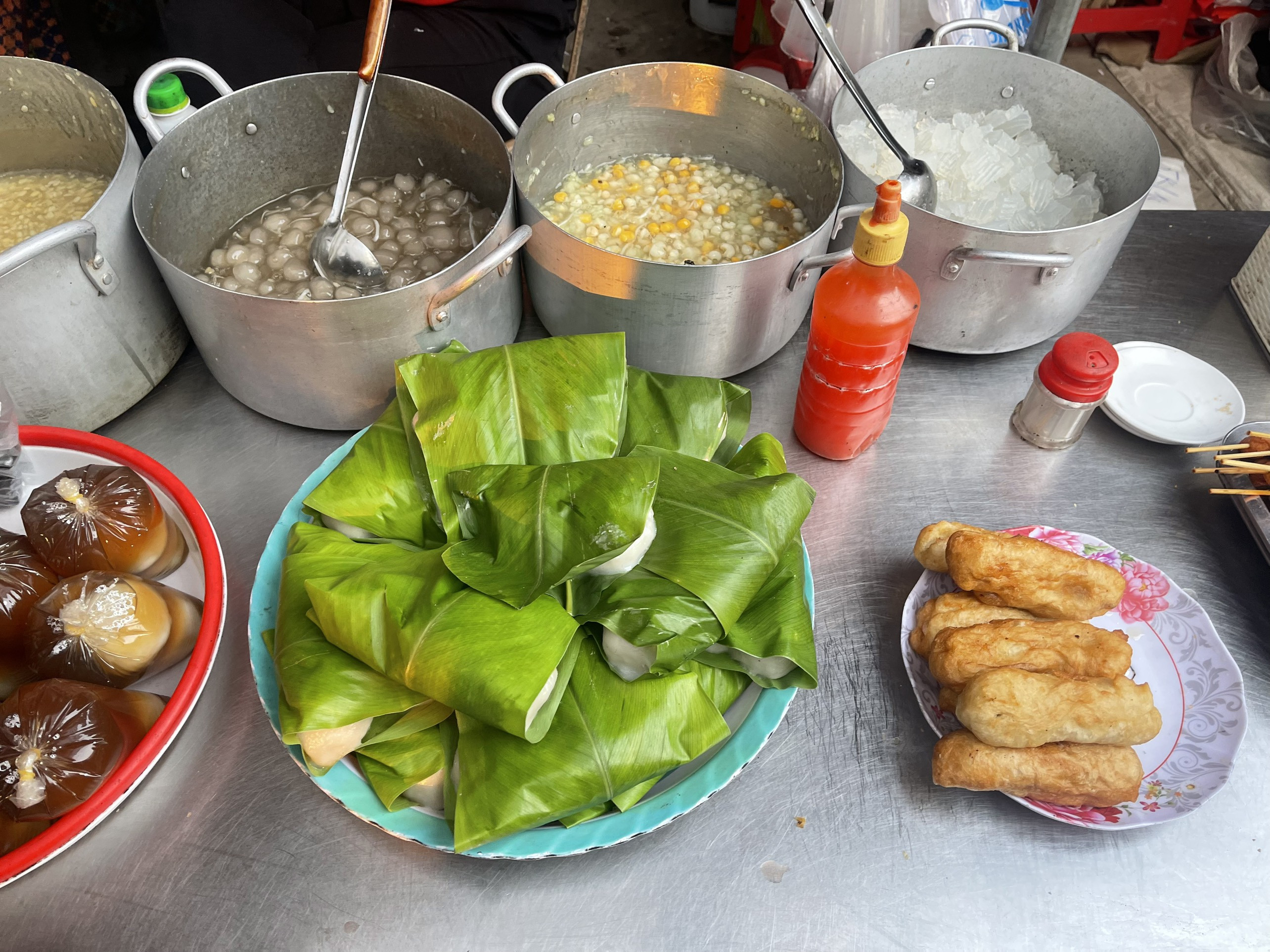 Anh Phan Đạt (ở Hà Nội) cho hay, mỗi lần có dịp trở về quê, anh lại cùng bạn bè lái xe máy, di chuyển vài cây số xuống chợ Bể để thưởng thức một số món quà vặt vốn “hiếm có khó tìm” ở Thủ đô. “Ở chợ Bể hiện vẫn còn bày bán và phục vụ nhiều món ăn vặt dân dã như bánh dùng, bánh rán, chè hay thạch găng, bánh nếp, bánh đa,… Dù cuộc sống hiện đại có nhiều món ăn lạ miệng, hương vị và hình thức hấp dẫn hơn nhưng những thức quà quê giản dị, bình dân vẫn khiến chúng tôi thổn thức, lần nào về đây cũng nhất định phải rủ nhau đi ăn, gợi nhắc lại kỷ niệm tuổi thơ”, anh Đạt bày tỏ (Ảnh: Quốc Đạt).