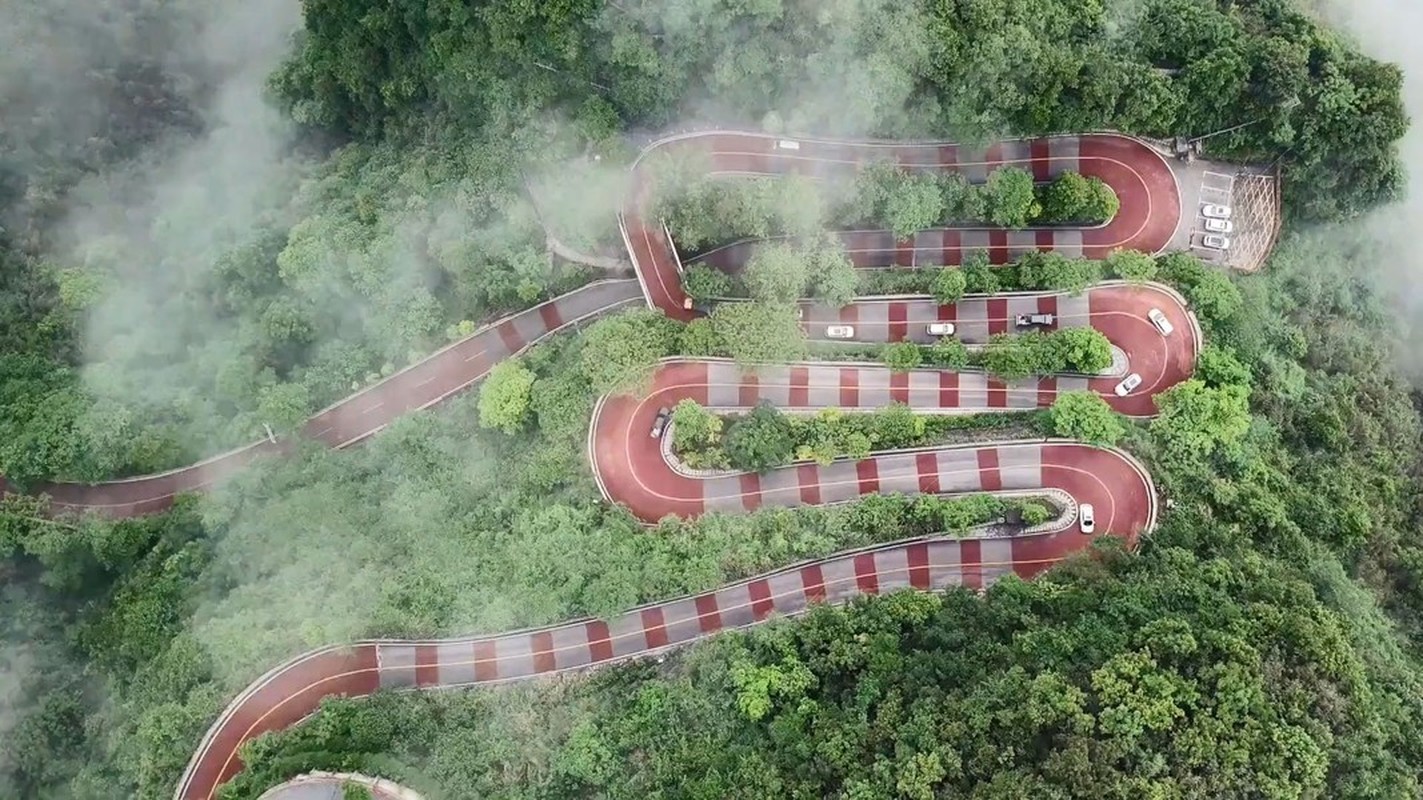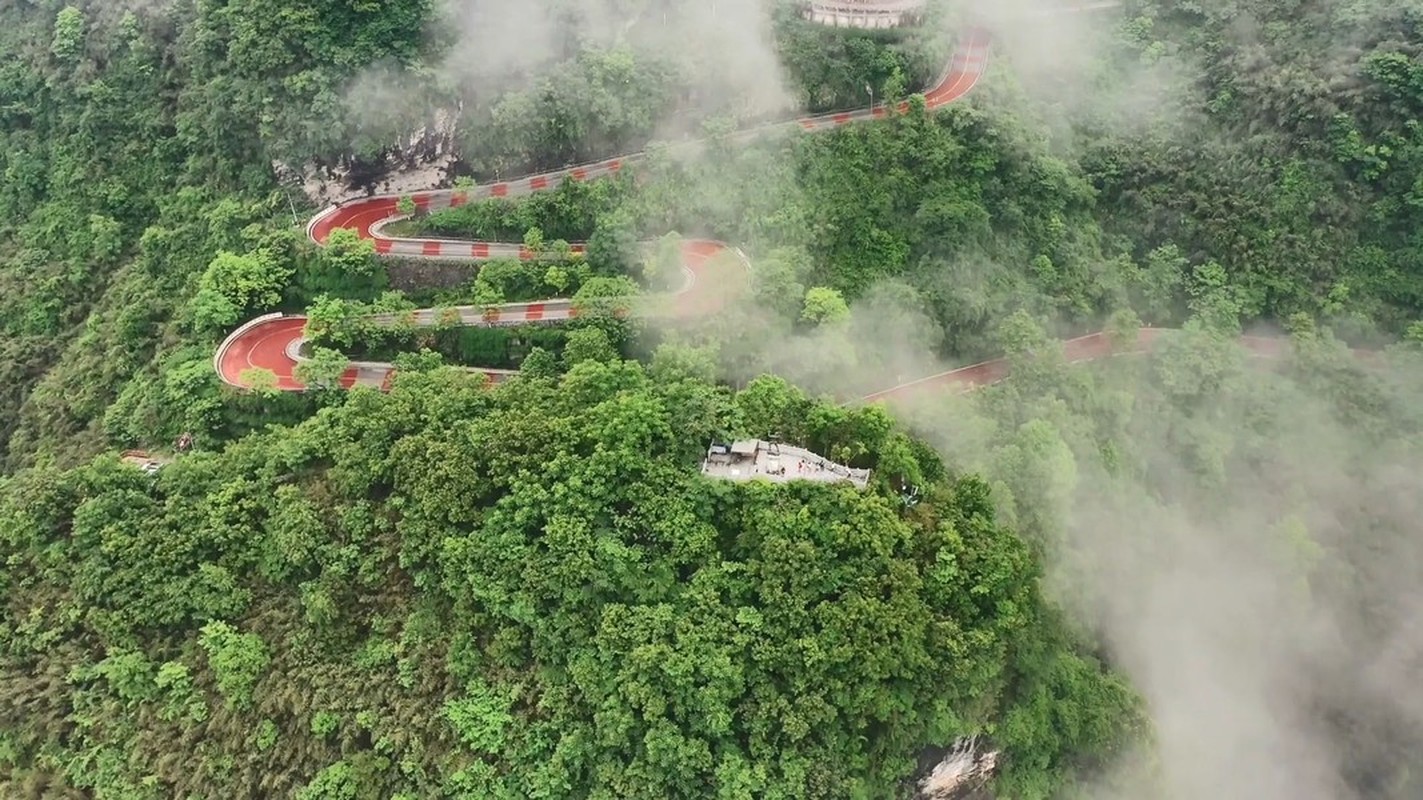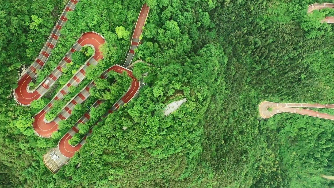 Đường cao tốc Ải Trại, một phần của đường quốc lộ 319, ở Hồ Nam, Trung Quốc, với 13 khúc cua hiểm trở ôm vách núi và một bên là vực sâu.
