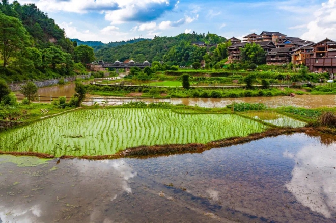 Hãy đến với khu thắng cảnh Bát Trại nếu bạn là người yêu lịch sử và những gì xưa cũ. Bước vào nơi đây, bạn như thể quay trở về nông thôn thời xưa, nơi có những ngôi nhà trại trụ cột chống lên cao, hoàn toàn bằng gỗ, đen nhánh như ngọc trai. Bao bọc xung quanh là những thửa ruộng xanh ngắt, đậm hương lúa mộc mạc.