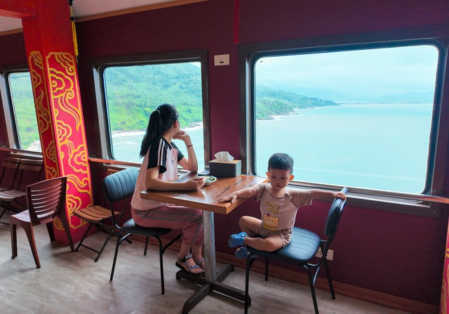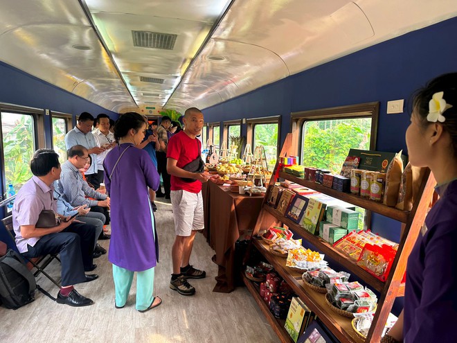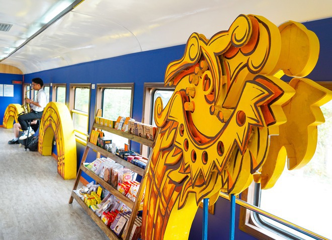 Còn ở toa tàu đặc biệt, blogger này cũng nhận xét được trang trí theo phong cách rất đặc trưng, mà mỗi đoàn tàu khác nhau lại có cách trang trí khác nhau. Cửa sổ ở toa cộng đồng to hơn, phục vụ du khách ngắm cảnh. Những món ăn như bánh mỳ, bánh bèo, bánh nậm, bánh bột lọc - đặc sản của cố đô Huế hay các loại bún, trà, cà phê - đặc sản của Đà Nẵng cũng sẽ được bày bán trực tiếp tại đây.