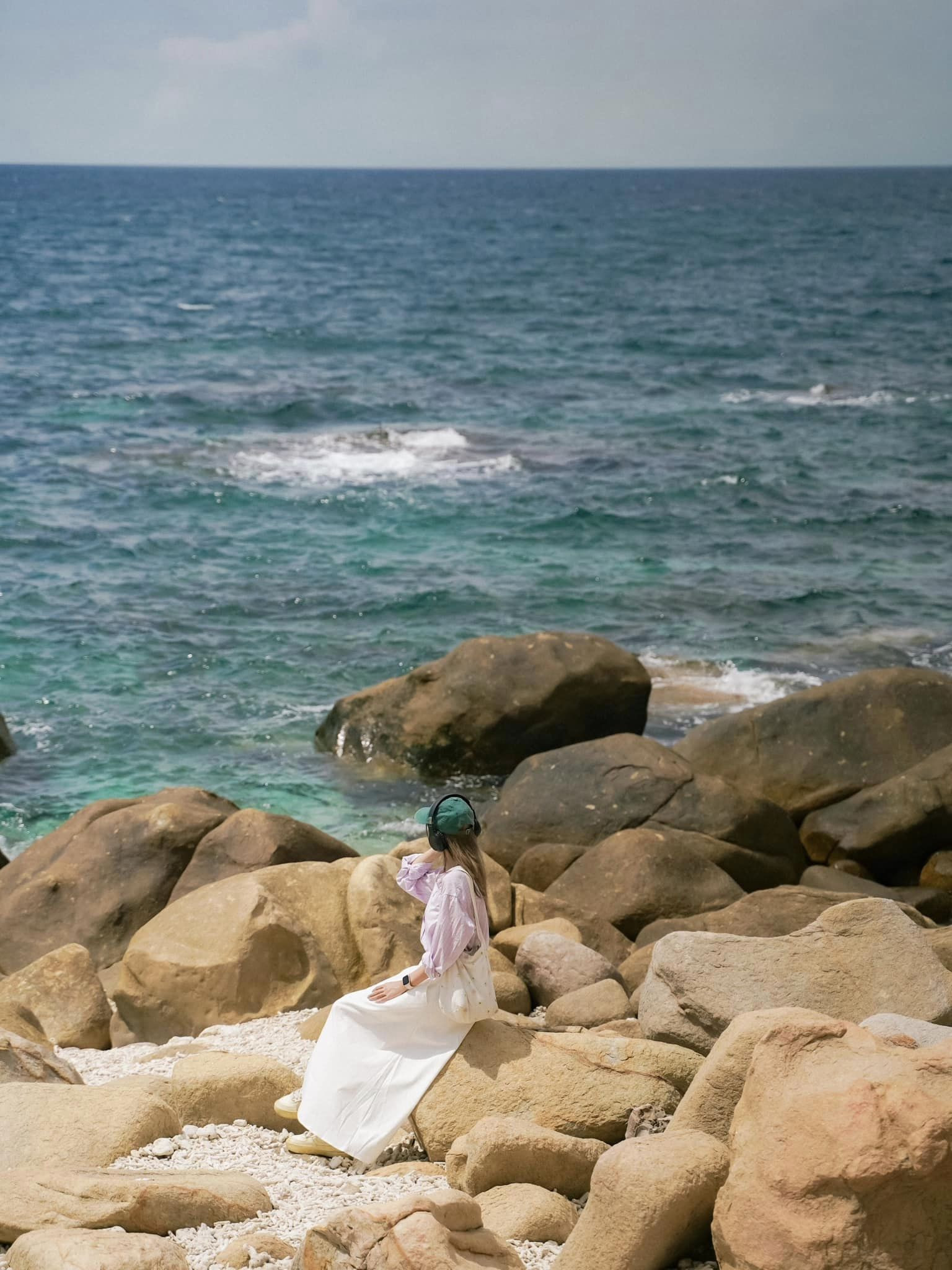 Ngày thứ hai tại Vĩnh Hy, cô gái Bắc Ninh thong thả đón bình minh sáng sớm, ngắm nhìn cuộc sống vùng biển hoang sơ rồi di chuyển đến cung đường ven biển Vĩnh Hy, nơi được mệnh danh là cung đường biển đẹp nhất Việt Nam.